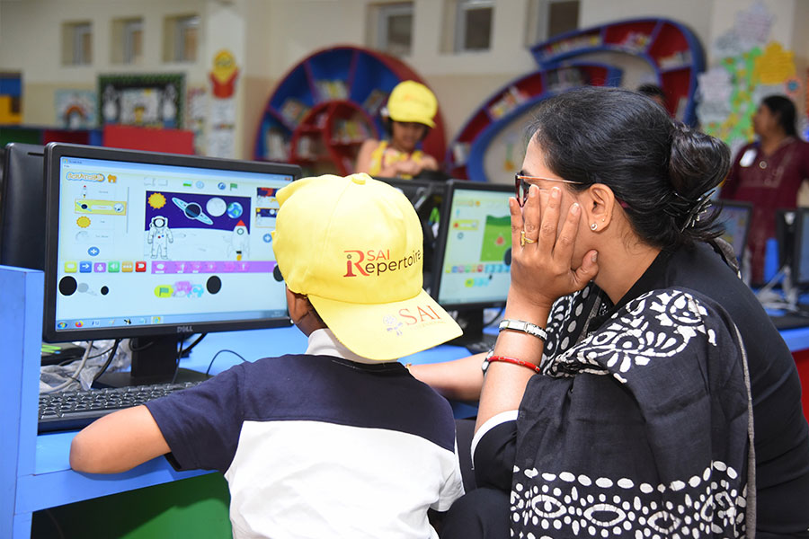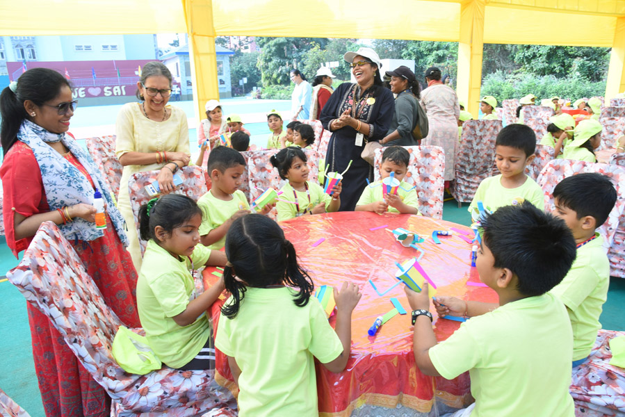 SAI Angan follows learning and growing through Multi-Sensory Approach, which incorporates eight major intellectual domains and provides opportunities for each student to use his/her unique intelligence to understand the subject matter. The innovative curriculum ignites the spark of joyful learning in the students.