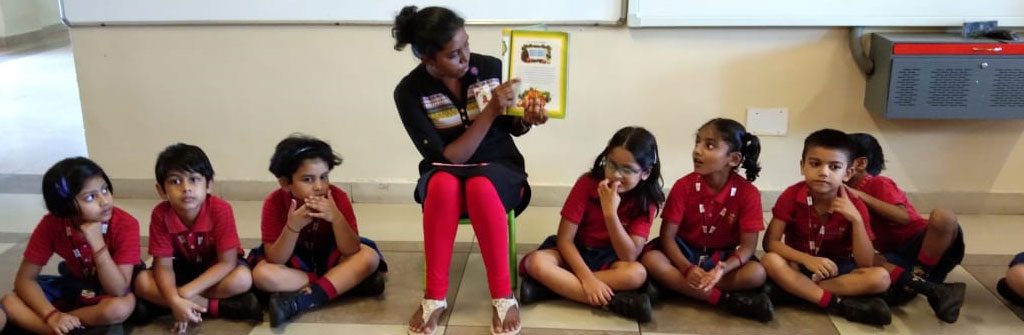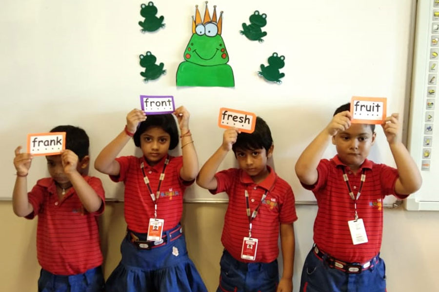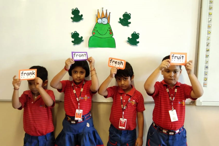 The children of KG II learnt about ‘fr’ sound words in a classroom activity. It started with the teacher reading a story from the language content book giving emphasis on ‘fr’ sound words to help children get conversant with the sound.