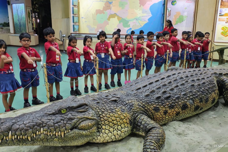 School trips are always fun-filled and eagerly awaited by our kindergarteners, offering them opportunities to learn, explore, and grow beyond the four walls of the classroom. On this special day, the enthusiastic learners of KG-II embarked on an enriching field trip to the Regional Museum of Natural History, Bhubaneswar. The museum, one of the most popular attractions in Odisha and a one-of-a-kind institution in eastern India, showcases biodiversity under one roof in a truly fascinating way. With its extensive collections of plants, animals, fossils, and ecological exhibits, the museum created an atmosphere of wonder and curiosity for our little explorers.