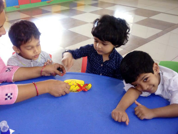 The ‘All About Me’activity is to help the Play group children know about themselves. The little angles were provided with cuts-outs of boys and girls and instructed to stick bows to the cut out of boys and ribbons to that of girls. This helped them to enhance their fine motor skills as well as strengthen hand-eye coordination.