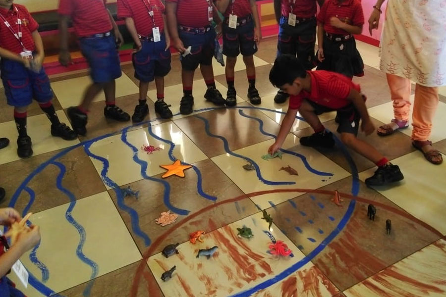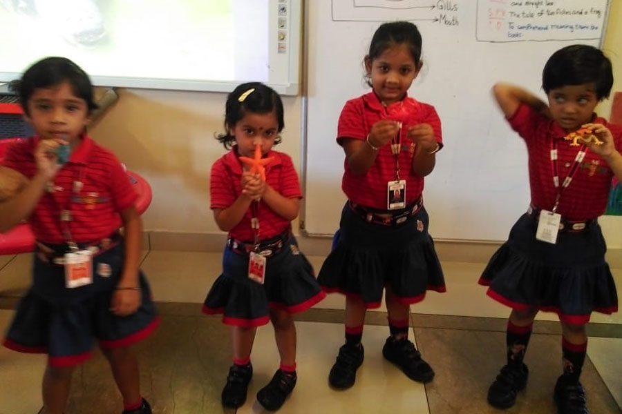 The world of animals is too fascinating for children. May it be land animals, water animals or amphibians. Amphibians spend part of their life in water and another part on land. To make the young children of KG – I understand about Amphibians, the teachers performed various activities such as showing the visuals of animals through power point presentation, colouring and doing activities such as segregating the animals according to their habitat etc. The PPT and the activities helped in developing the visual, cognitive and kinaesthetic skills of the children. Students also displayed more confidence on being able to identify the names of the animals and speak a few lines about them, which aided in enhancing their inter and intra personal skills.