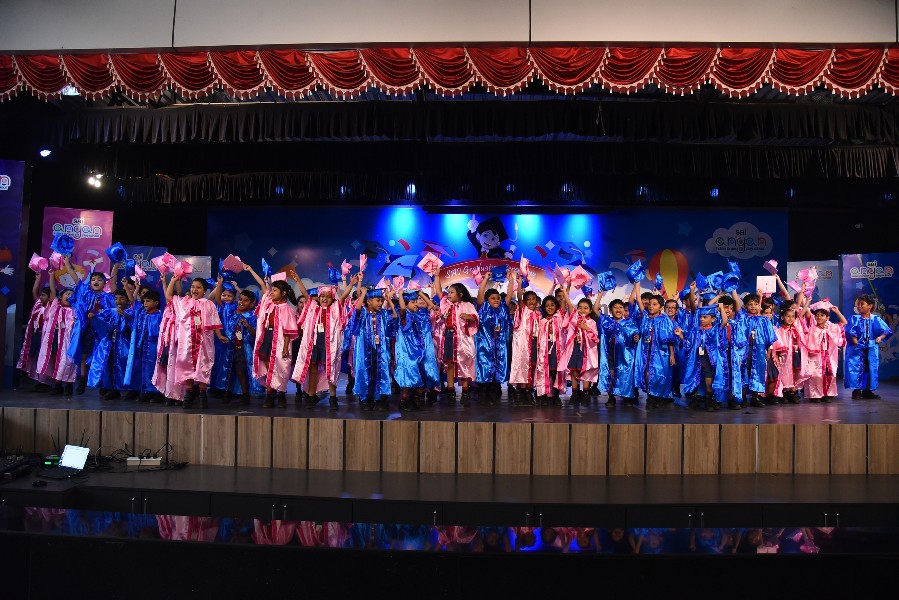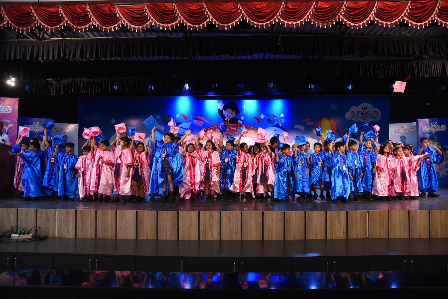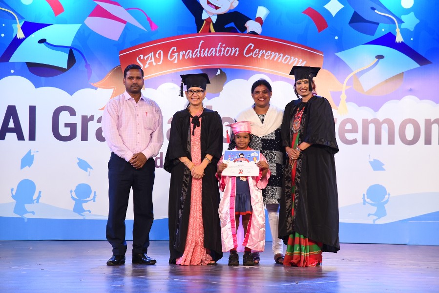 Kindergarten graduation ceremonies are the perfect opportunity to show these young learners how proud we are of them & how much we believe in their future. The ability of students to fully engage in and benefit from their kindergarten experiences has been shown to depend on the degree to which they successfully transition into & from kindergarten, and the success of that transition is at least partially predicated on their home and early educational backgrounds. SAI Angan tries to imbue this rationale as an institution while dealing with young minds. We focus on celebrating small milestones and educational achievements, thereby inculcating children with a sense of accomplishment and pride. Teaching about graduation from an early age also helps in easing children into the transition to school, significantly benefitting their future learning experiences.