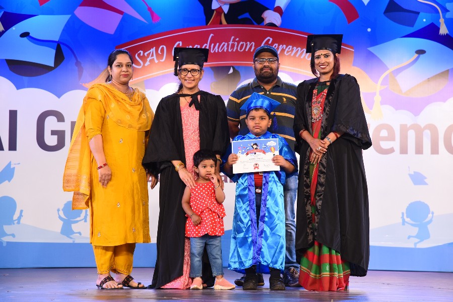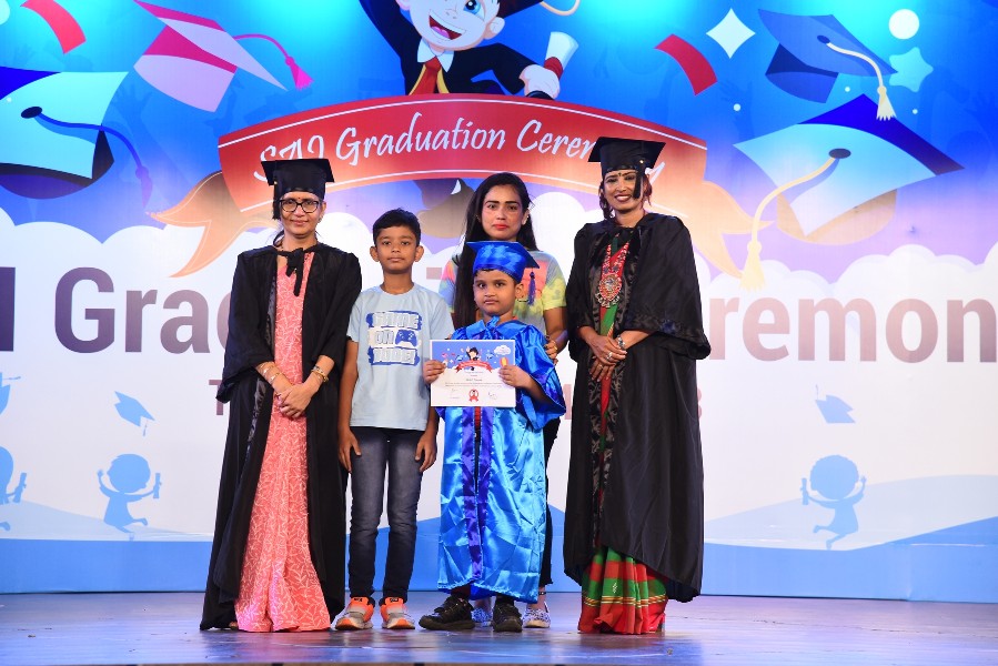 The young learners of KG-II experienced an innate feeling of pride and accomplishment as they walked across the stage to receive their preschool diplomas. It was a joyous day for the kindergarteners of SAI Angan involving caps-and gowns & loads of smiles.