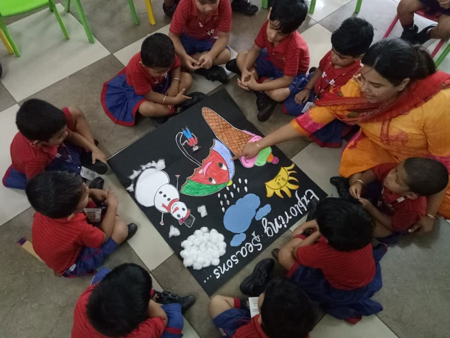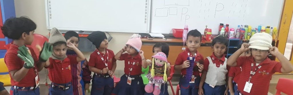 To inculcate the importance of seasons, an activity was conducted for the children of Nursery. They were asked to experience and explore the various seasons like summer, monsoon and winters and the clothes they prefer wearing during the time. Children had a gala time sorting the pictures to their respective seasons. It was quite amusing to see the children stand under an umbrella or wear a raincoat to symbolize monsoon or wear woollens for winter or don a cap and wear black glasses to get rid of the sweltering heat of summer.
