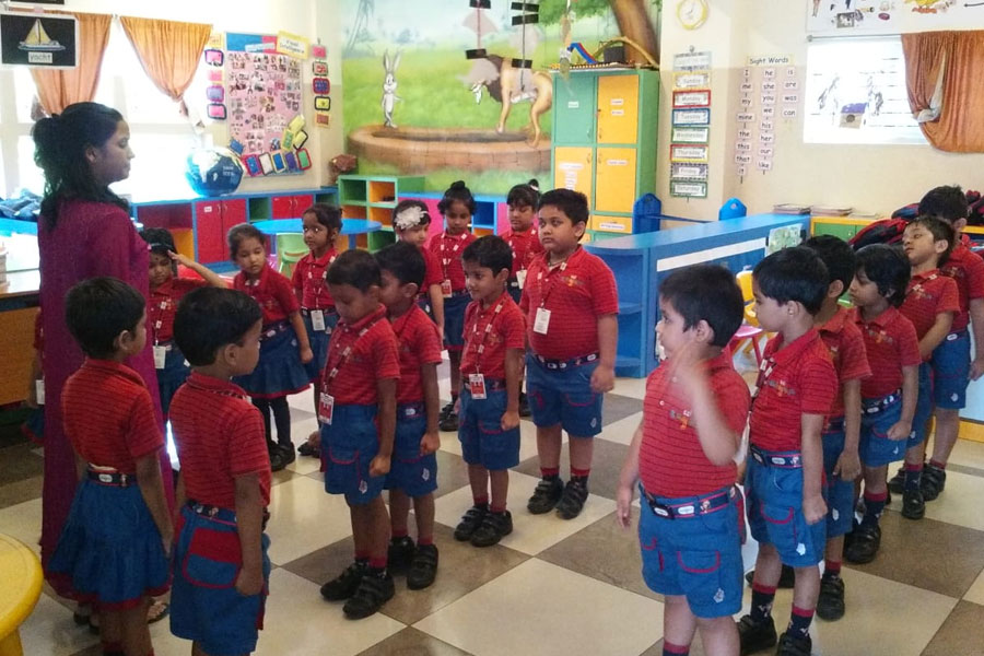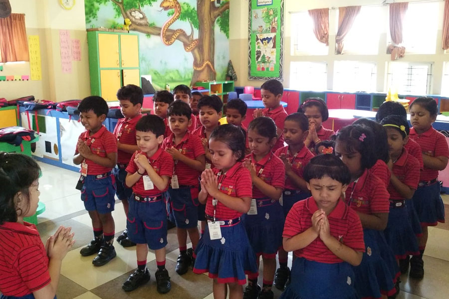 It started with the prayer, ”Where the Mind is without Fear” written by Nobel laureate Shri Rabindranath Tagore. It was conducted in the morning as soon as the students reached the class. This is done every day to induce the spirit of discipline and enable the students to start the day on a positive note.