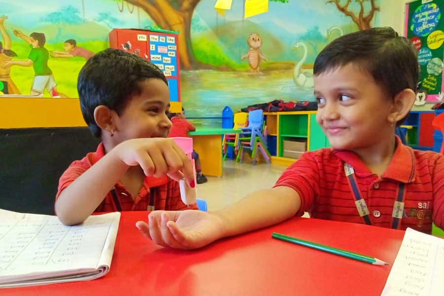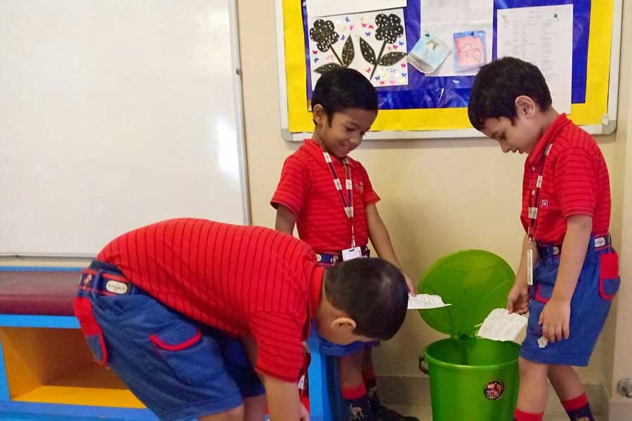 The children of KG I practice some good habits in the school every day like putting litter in the dust bin, arranging the classroom after class, sharing things, walking in a line, respecting and loving each other, washing hands before and after having food as well as after using the toilet and many more. They are also made aware of different other good habits they should follow at home like brushing their teeth twice a day, trimming their nails regularly, taking bath every day, wearing clean clothes etc.