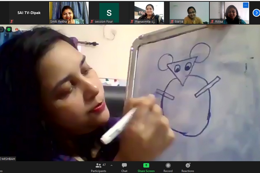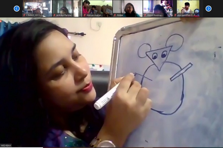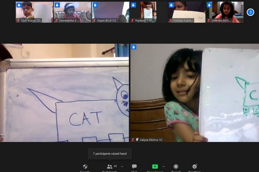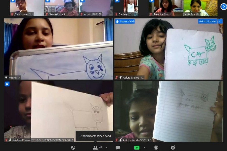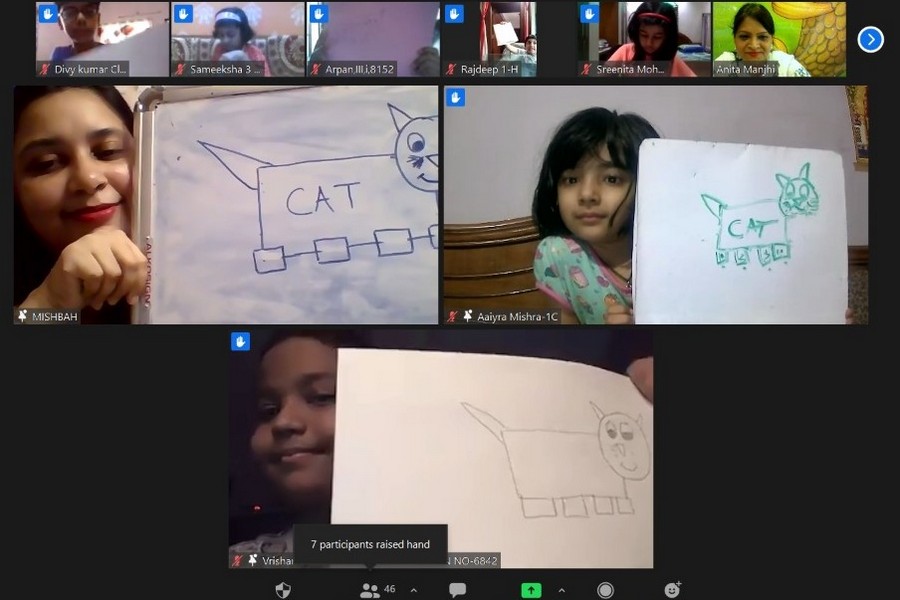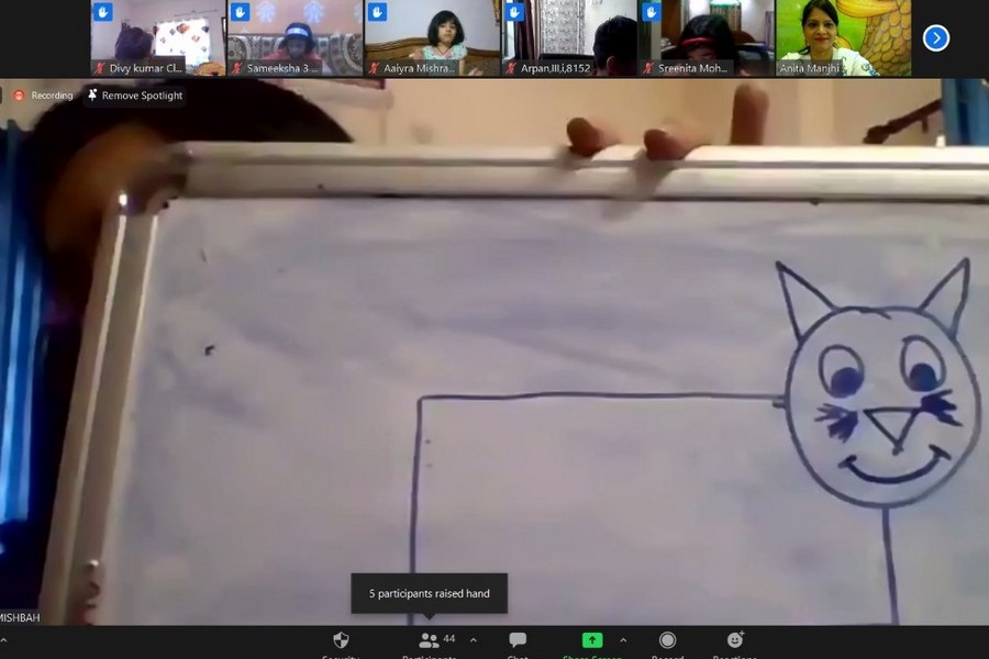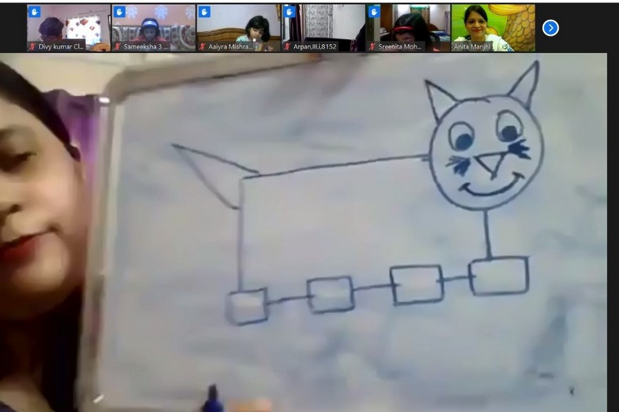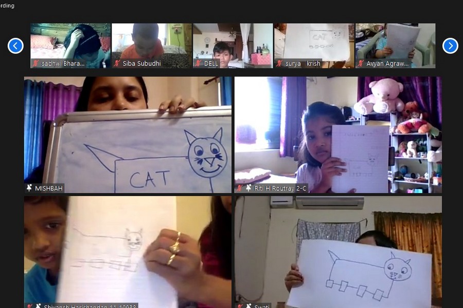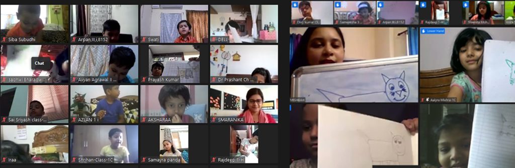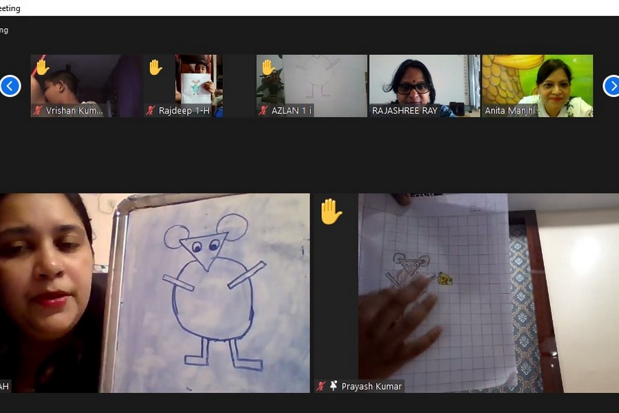 Kids of class 1 drew  animals (cat and mouse) using different 2-D shapes like circle,triangle and rectangle in maths copy.The ability to use shapes to describe objects will greatly enhance a child’s ability to verbally communicate,  the ability to draw or create shapes will help the child transition from stick figure drawings into more detailed drawings using shapes or be able to create a face out of craft pieces.
