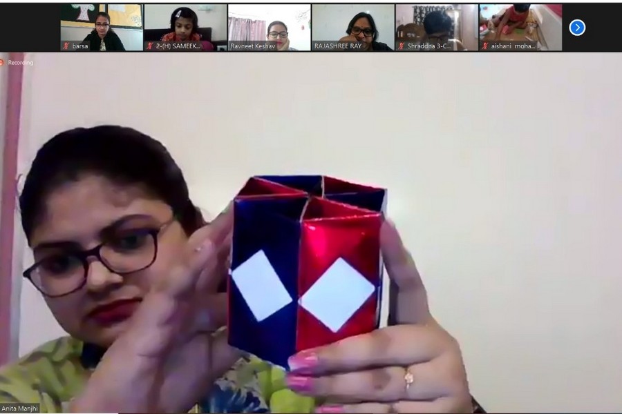 Students of Class I made a pen stand using colourful papers, cut into new shapes like prisms and hexagons. This model is quite useful, not only for learning new shapes but also to keep their desk organised. All the members had a fun time experimenting with shapes and creating something useful. While students of Class II and III enjoyed solving a brain booster game which helped enhance their memory. Brain Booster Games consists of different training modes to improve brain function and stimulate the mind to improve overall performance.