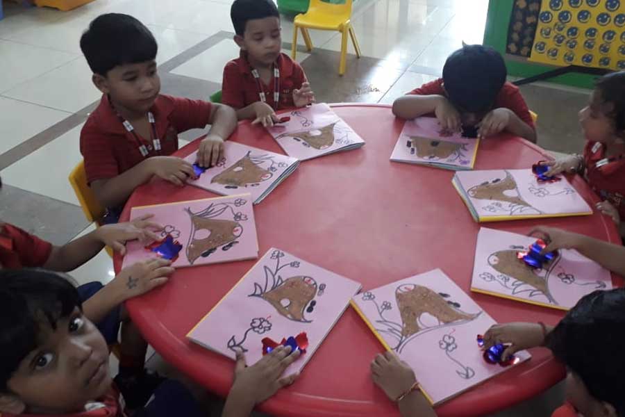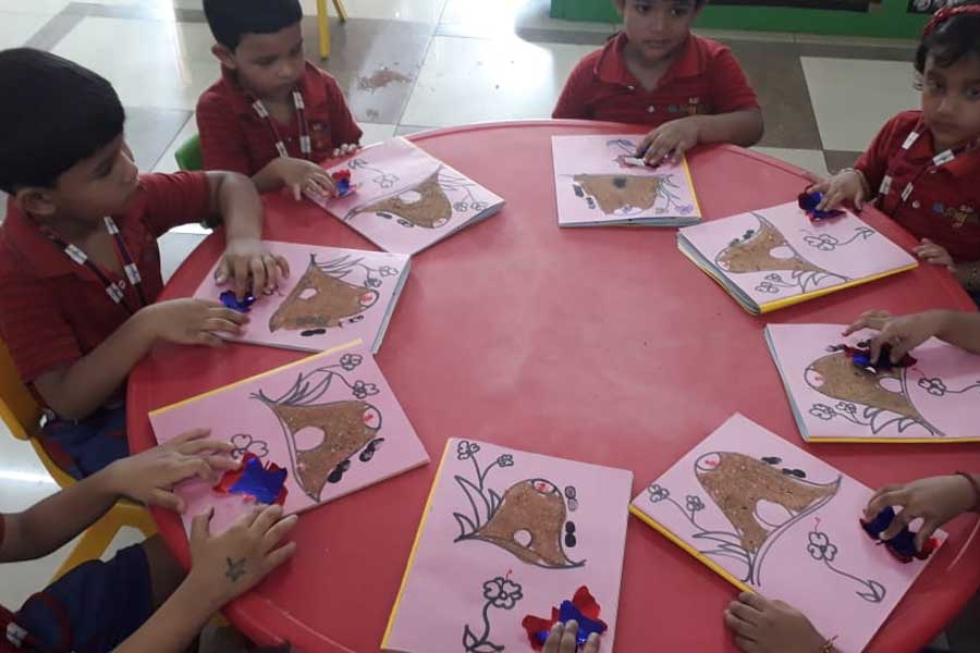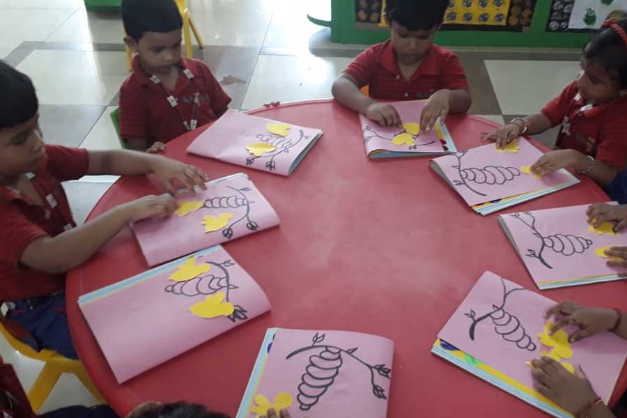The children enthusiastically explored some ant hills where ants live, patiently watched how spiders weave their webs, observed ladybugs sitting on blooming flowers and plants, etc. Later on they created beautiful pictures of insects by filling colours and sticking colour papers and sands in the outlines provided to them. These activities inculcated naturalistic skills in them by creating an awareness of their environment and its beauty. It also helped them in building vocabulary skills and enhancing gross motor skills.