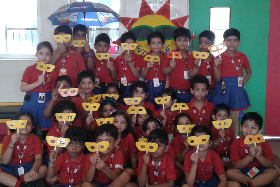 Children of KG-II learnt about different kinds of weather and particularly about the Sunny weather through a small activity. They went out of their classroom and got a feel of the sunny rays in the Atrium. Some of them took the help of umbrellas to protect themselves from the harsh rays of the sun, while some children wanted to feel it. Some of them wore sun glasses and caps to make sure that the sun rays don’t hurt their skins.