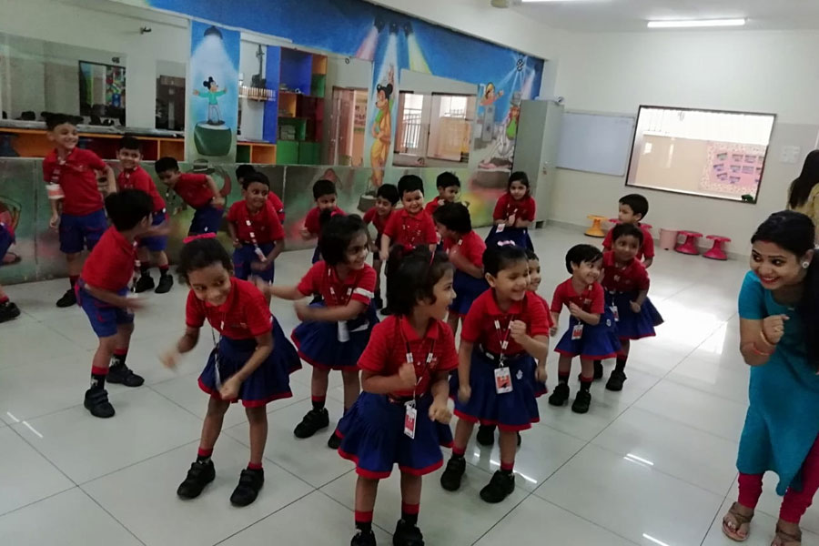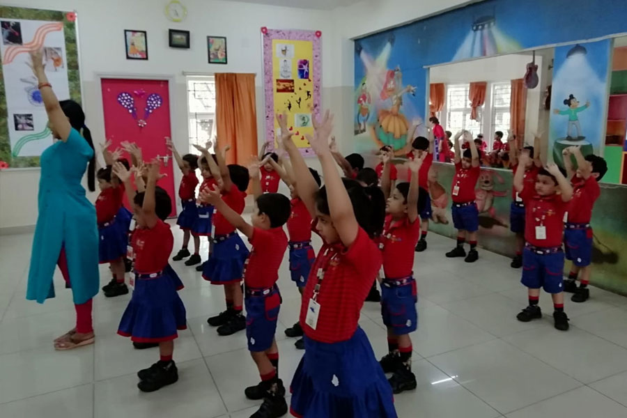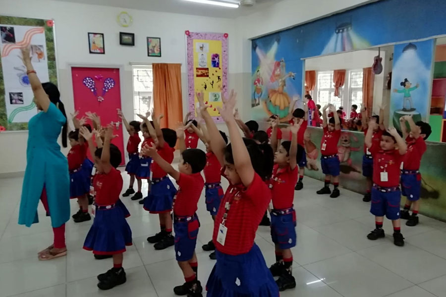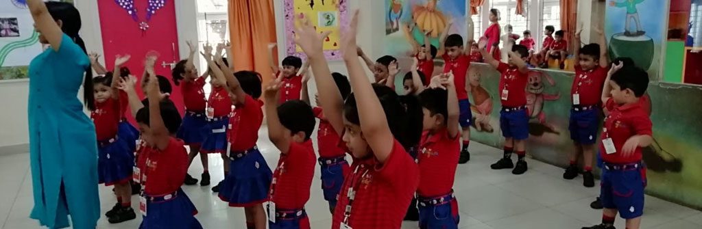 Dancing is a form of aerobics that involves joyful exercise with music. The children of KG-I had great fun in the aerobics class which turned out to be a good workout for them. Aerobic dancing started with a “warm up” which included slow steps, then came the “high impact” where the main aerobic routine dance was done and lastly came the “cool down” where the children relaxed.