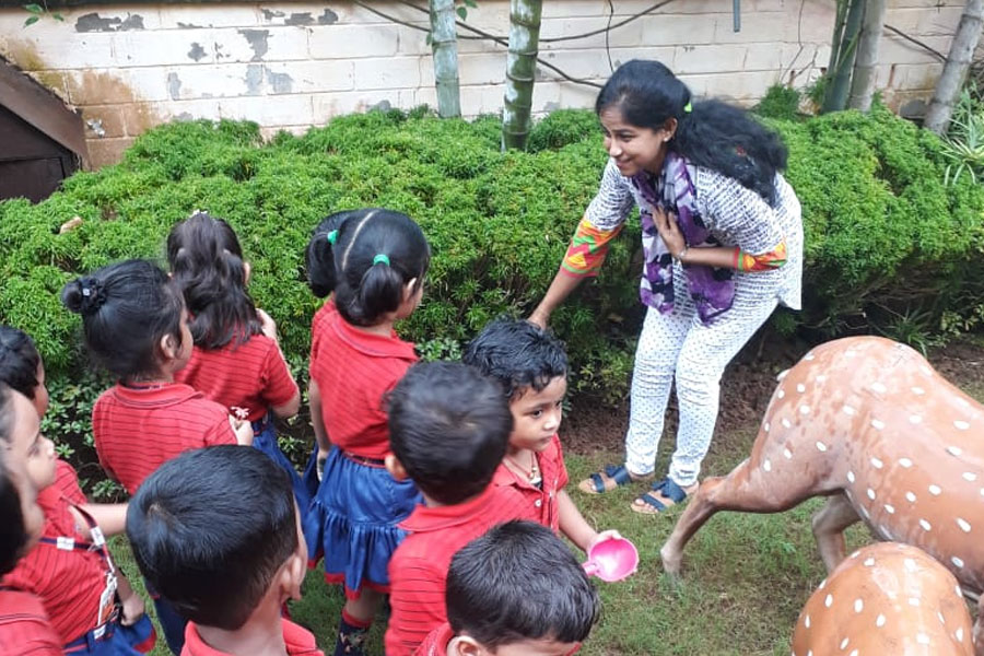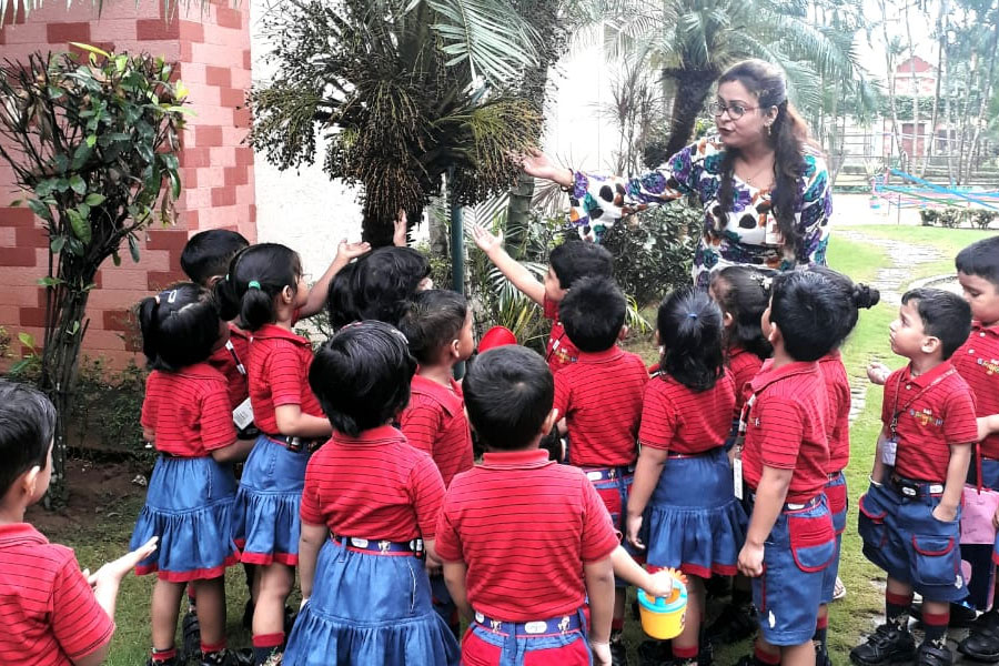 The children were taken for a garden walk with paper bags in which they collected twigs, pebbles, flowers, dry leaves etc. They saw different types of plants, shrubs, leaves and flowers. They came to know that it is a home to many insects like butterfly, snail, earthworm, caterpillar, ladybug etc. They also met the gardener responsible for nurturing the plants.