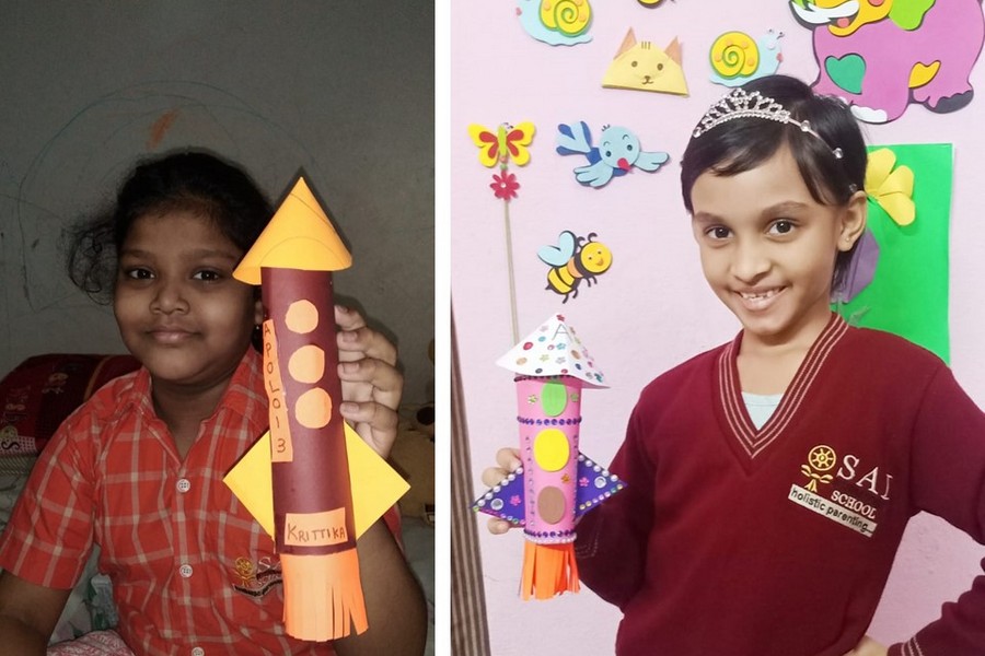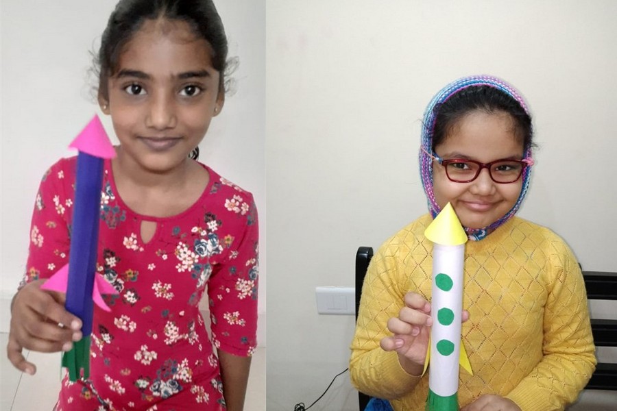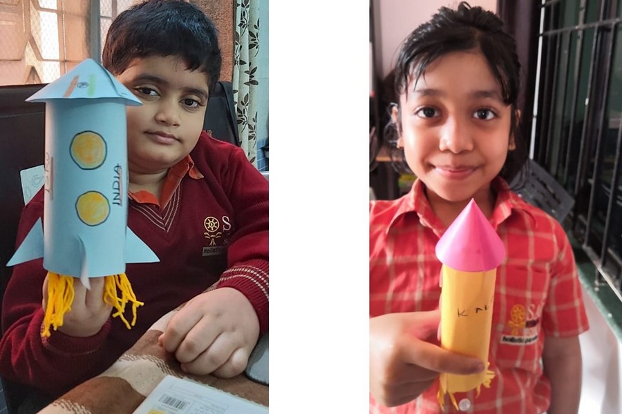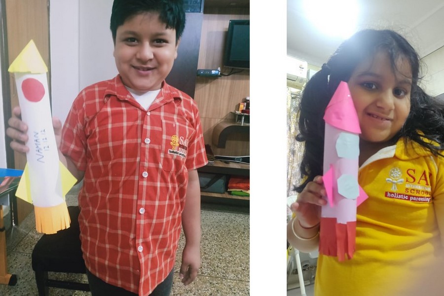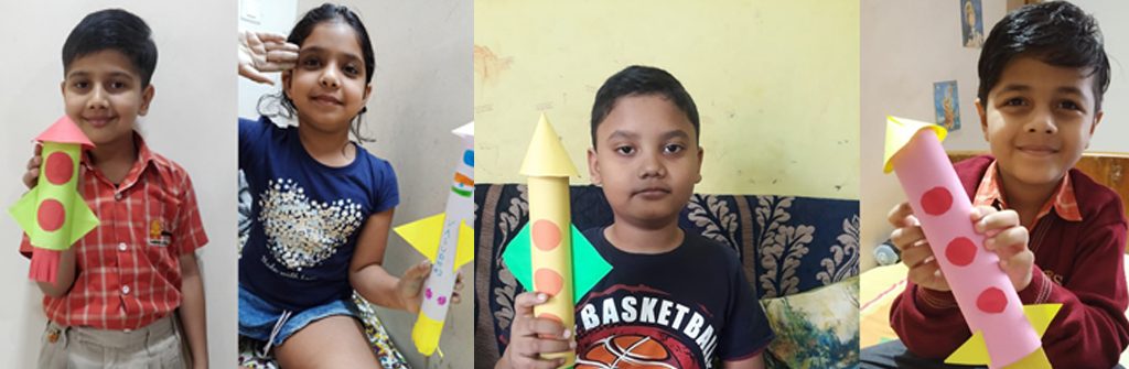 As we all know, “All studies and no play make Jack a dull boy.” A small activity of making paper rockets for space was made by children using colourful papers. That helped the class become more enjoyable and vibrant. Children were very happy and were looking forward to another such interactive class.