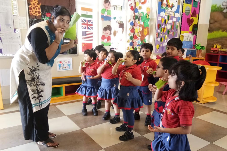 Trees provide us with many benefits necessary for survival, including clean air, shade, food and several other things that we use every day. To help the students of KG I understand the importance of trees, few activities were conducted. Through a power point presentation, students were introduced to various parts of the trees as well as briefed on the different things we get from each part like paper, rubber etc.