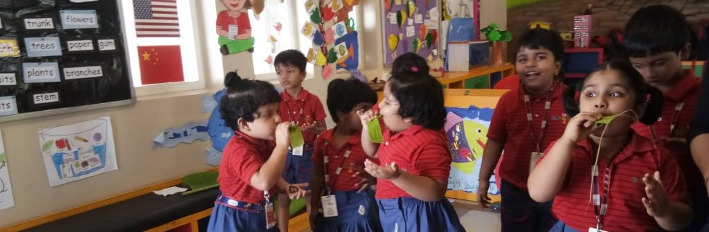 Students also learnt about leaf printing through an activity. They enjoyed the activity that showed the use of different leaves like making whistles out of banana leaves and hair and hand mehendi out of Henna leaves. These activities helped the students to develop their visual, linguistic, inter and intra personal, kinesthetic and naturalistic skills.