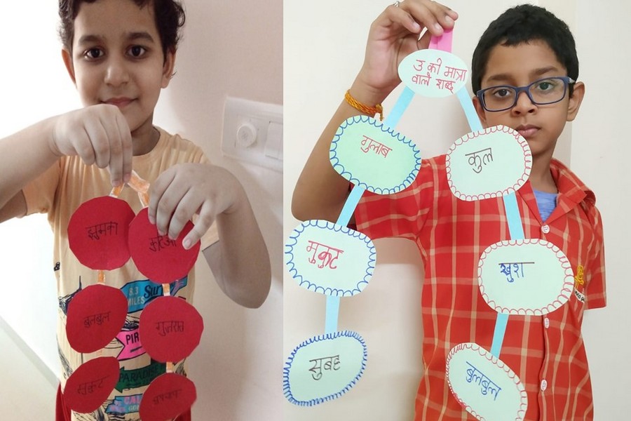 हमारे  कक्षा २  के  विद्यार्थियों  ने ( ई और उ की मात्रा )  के  विषय  पर   आकर्षक  गतिविधियां  किए। बच्चों ने वर्णों  के साथ मात्रा को  जोड़ते  हुए  भिन्न-भिन्न कागजों  के  टुकड़ों पर नए  नए शब्दों को सुंदर से लिखे  तथा  उन्हें  सजाकर गोंद में चिपका कर  दीवार पे  लटकाने वाली  तथा चिपकाने वाली  आकर्षक  वस्तुएं बनाए हैं ।इस गतिविधि  के  माध्यम  से  बच्चों  में   कुछ  नया  चीज  बनाने  का  उत्साह  तो  बढ़ा  ही  है साथ में  मात्रा के  प्रयोग जानकारी भी हासिल किया है।