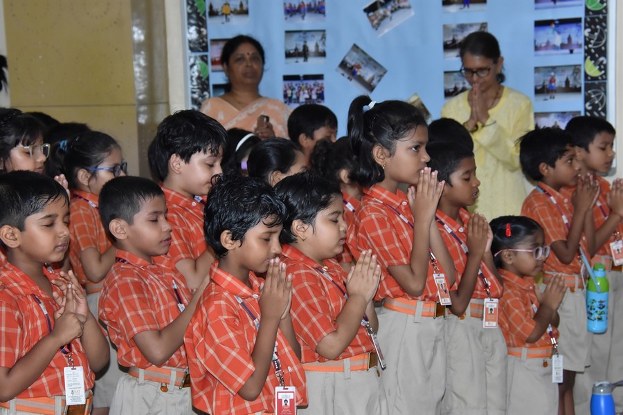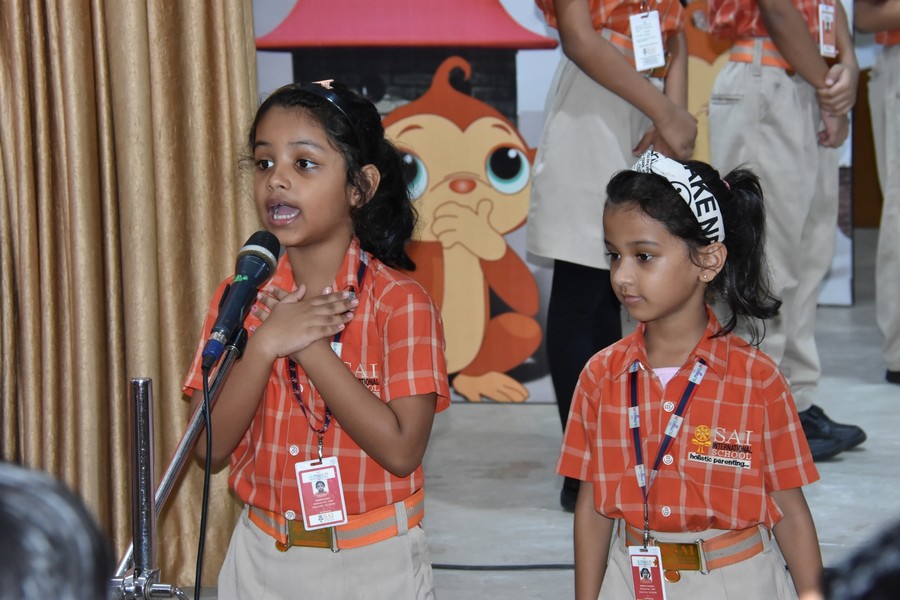 Amongst the array of engagements, the young learners of SAI Angan emerge as beacons of inspiration. Their assemblies serve as canvases to paint the founder’s ideologies. One such assembly that resonated with his teachings was the tribute by Class II-D on August 7, 2023. Through a carefully crafted presentation, the students embark on a journey through Dr. Bijaya Kumar Sahoo’s life, highlighting his wisdom and compassion.