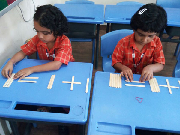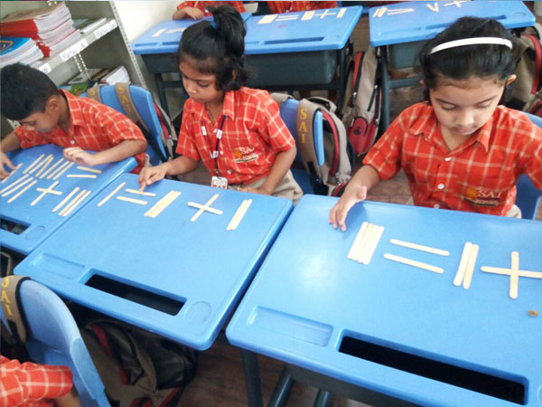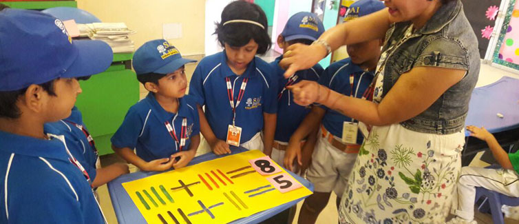 An activity on Addition was conducted for Class-I students. In the activity, the teacher called two students to stand to her left and three students to stand to her right and asked to calculate the total number of students. The teacher introduced the symbol “+” on the flash card which was used for addition. She continued the activity by changing the number of students each time. To ensure that the children understood the concept, she conducted another activity in pair, where children used objects like rajma beans, ice cream sticks, number cards and other things around them and found their sum. Through such activities, students not only understood the concept of addition but they were able to apply the knowledge in their daily life situations. The students were very excited and enjoyed the whole classroom process.