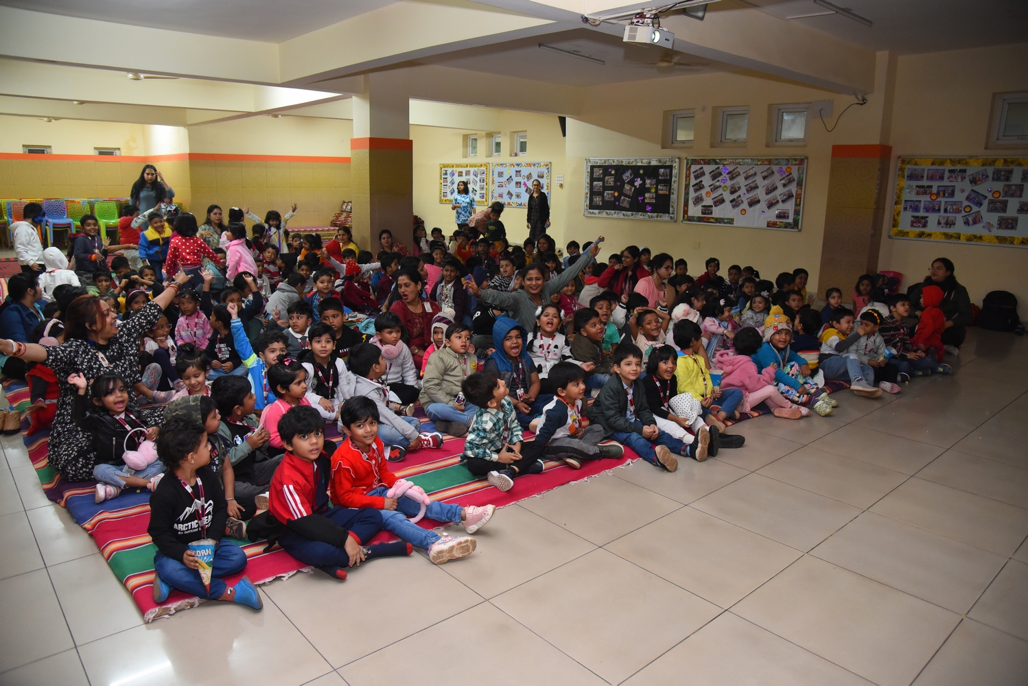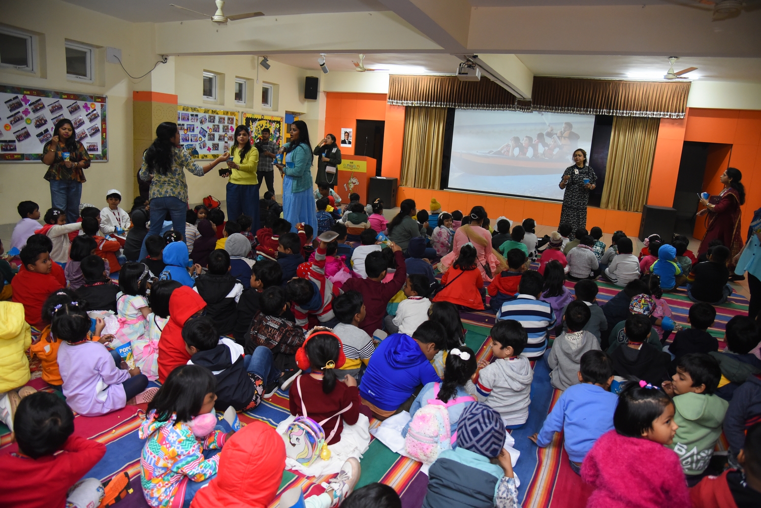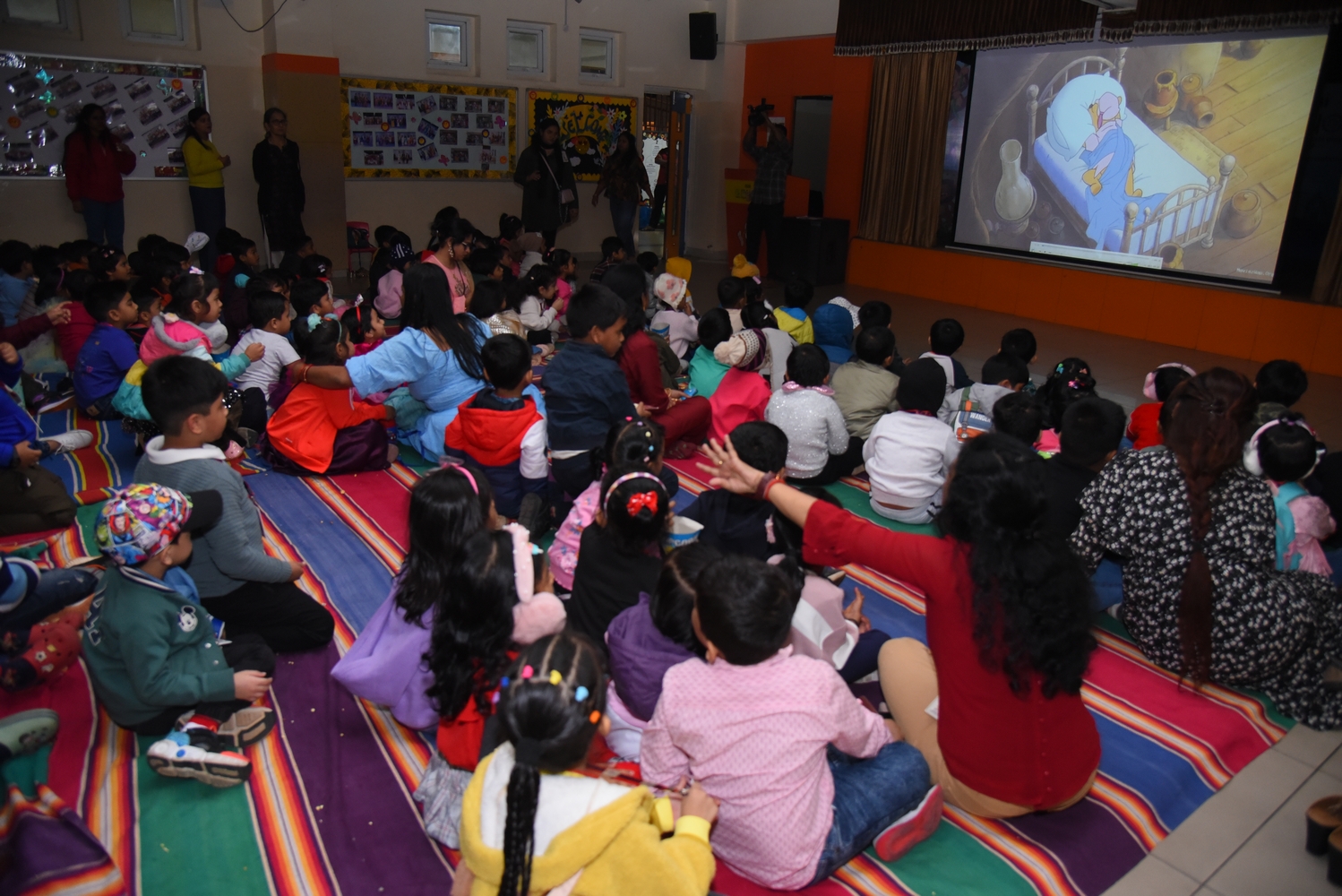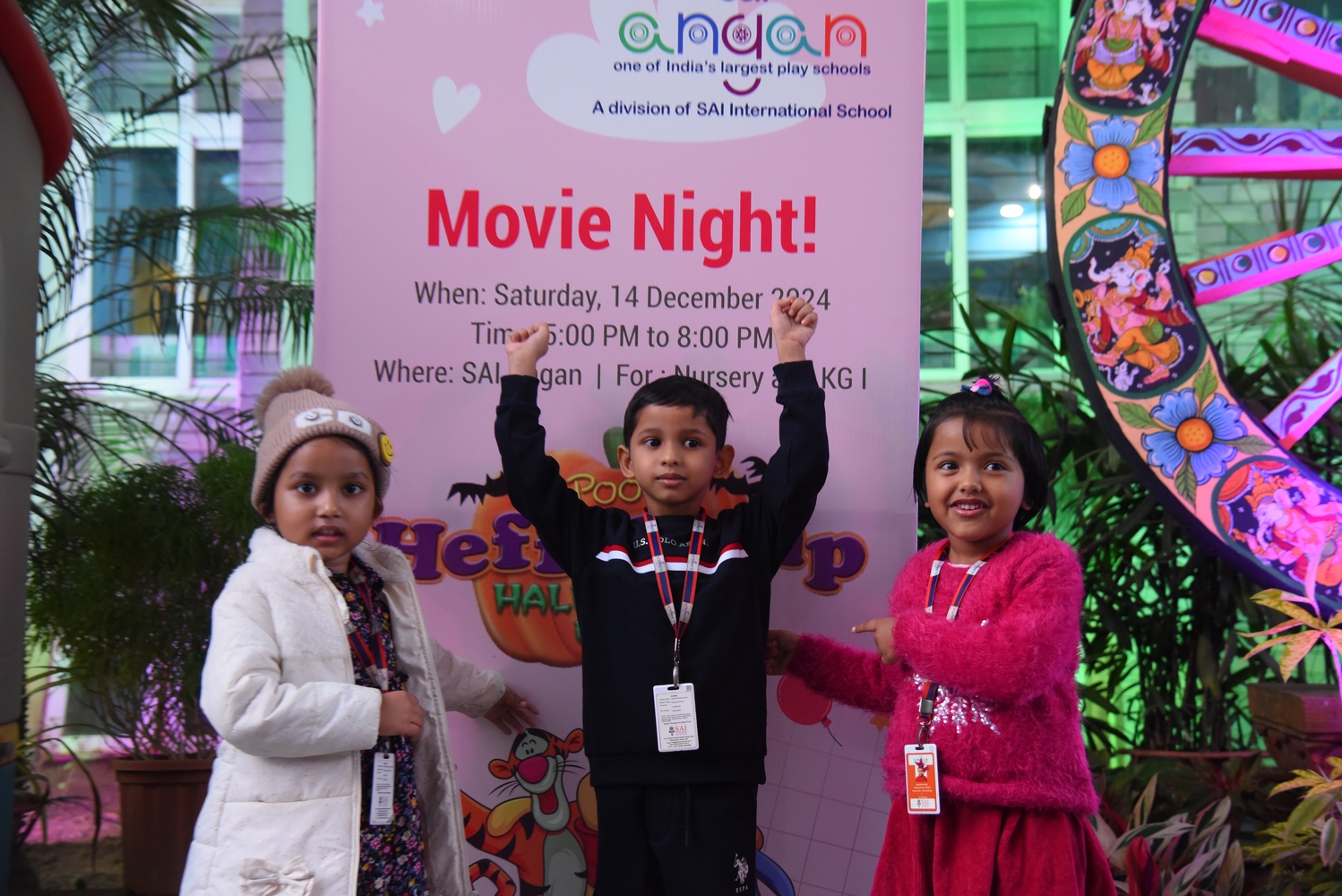 On December 14, 2024, SAI Angan hosted its second session of Movie Night for Nursery and KG-I learners. This event was designed to give children a delightful and enriching experience while also providing parents with a chance to unwind and enjoy “me time.”