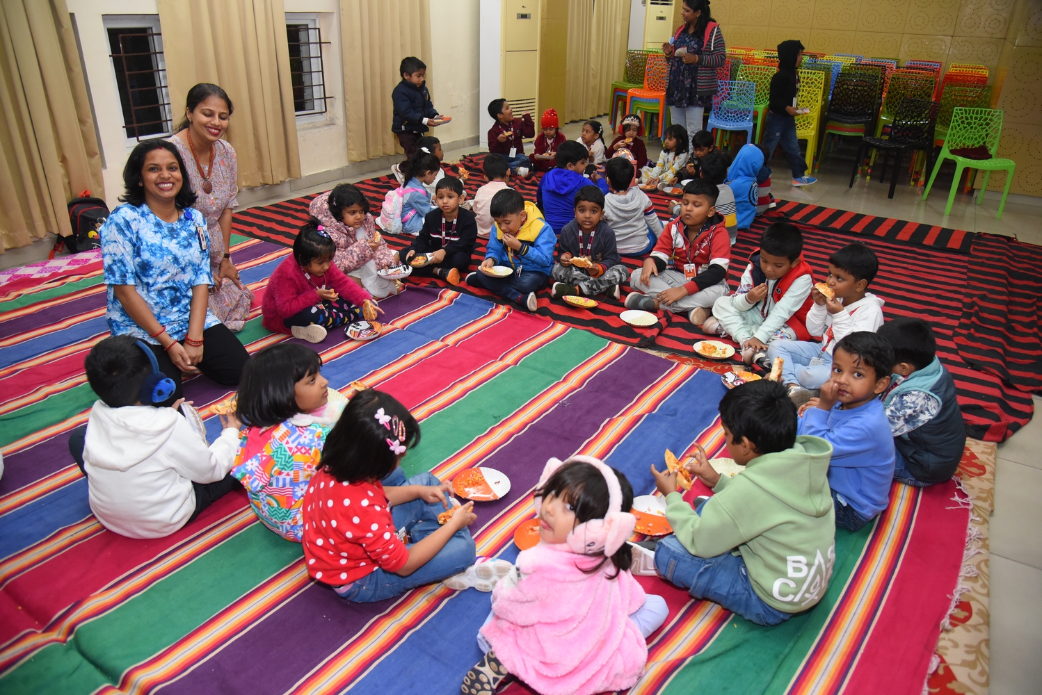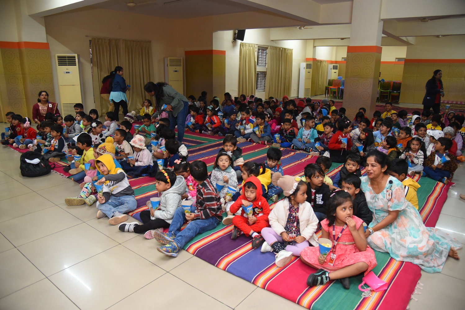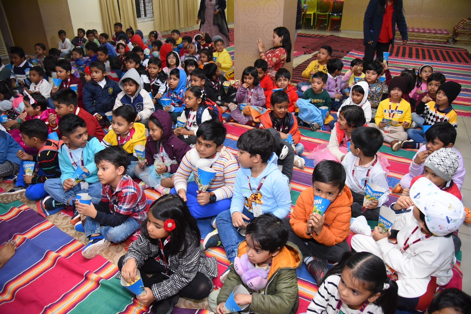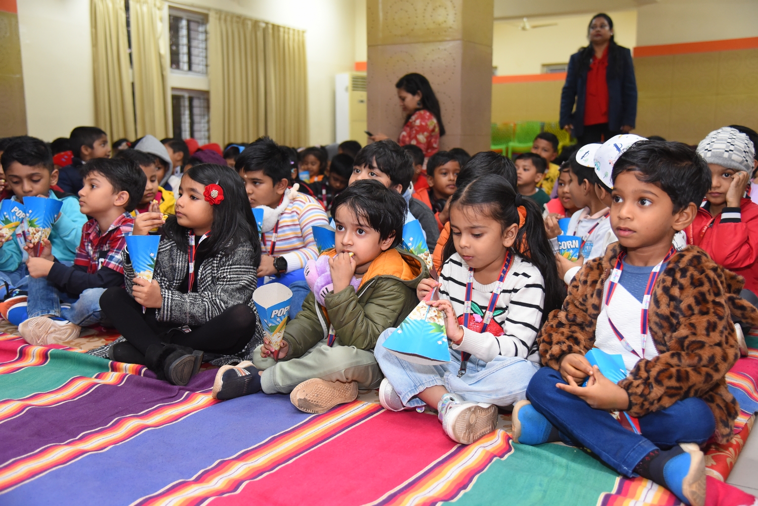 On December 14, 2024, SAI Angan hosted its second session of Movie Night for Nursery and KG-I learners. This event was designed to give children a delightful and enriching experience while also providing parents with a chance to unwind and enjoy “me time.”