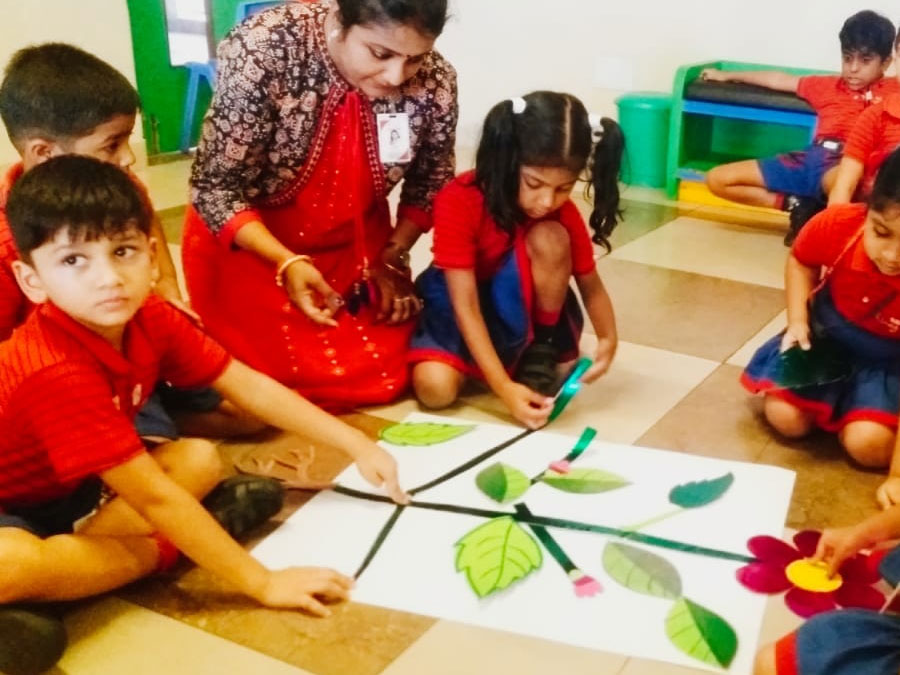 Enjoying the beauty of nature is an important part of the development of a child. Nature gives children the chance to engage all their senses of perception. Exploring nature helps children improve their attention span and enhance the capacity to learn. An activity was conducted for the children of KG-II to augment the tiny tots’ love for learning about nature. Children were made to go out of the confines of their classroom to explore the greenery in the campus. They were thrilled to go out and feel the plants with their own hands. The real life experience was quite amazing for them. To support their creative thinking and problem solving skills, an activity on puzzle fixing was conducted, where the children were not only encouraged to read the words related to parts of the plant but also learn basic things like, roots grow under the soil and shoot grow above the soil. To enhance their linguistic and visual skills, it was followed by worksheet and audio-visual aids.