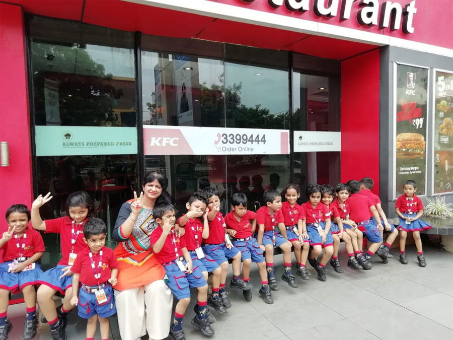 Field trips are excellent ways which enable students to develop a gamut of skills. It gives them an educational experience away from the confines of their classroom or their regular school environment, as well as help them learn in a more hands-on and interactive manner than they do in school. For children, field trips are a welcome break in routine. The KG-I children experienced real learning on their trip to a Mall. They had an amazing time watching the various things like toys, books, shoes, clothing, fruits and vegetables being sold. They visited each part of the Mall and got a briefing on the various sections like grocery store where food items are kept along with fruits and vegetables. While walking through the store, they could find things starting from different letter sounds. It created lot of excitement among the students. The Mall turned out to be a fun place of learning and enhanced their linguistic and visual skills along with their naturalistic and kinesthetic skills.