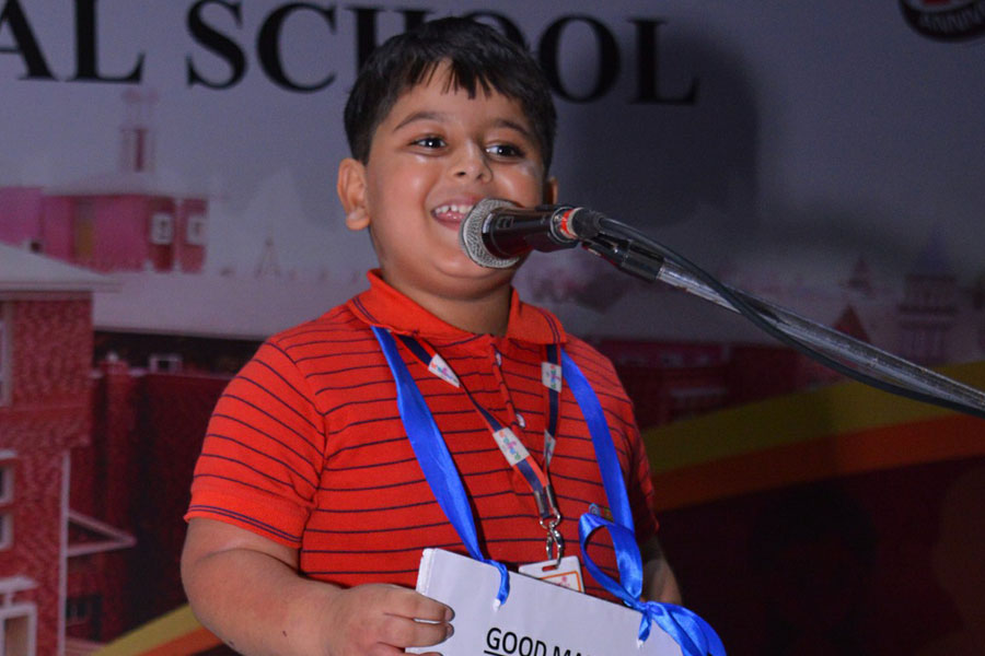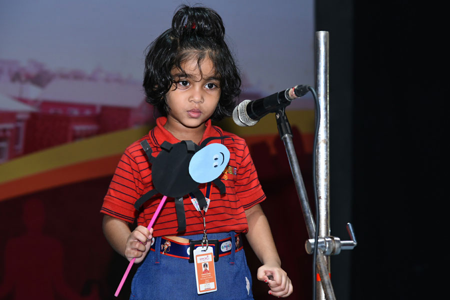 Metrical Stanza Recital activity helps in developing rhythm, phonemic awareness, memorization skills, self-expression and confidence. An activity on the same was conducted for students of KG-I where all of them had come well prepared and ready with props. The tiny tots displayed confidence while reciting the rhymes on the stage. The audience comprised of students and teachers highly appreciated and praised their effort by clapping.