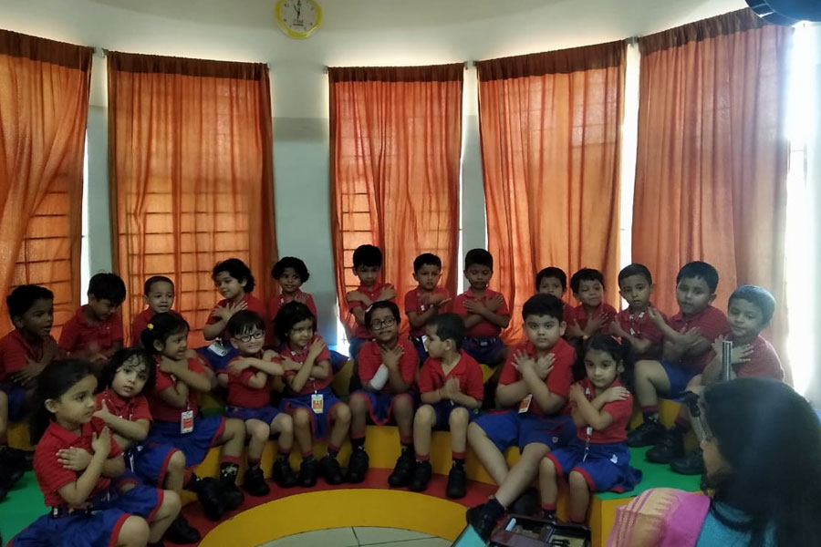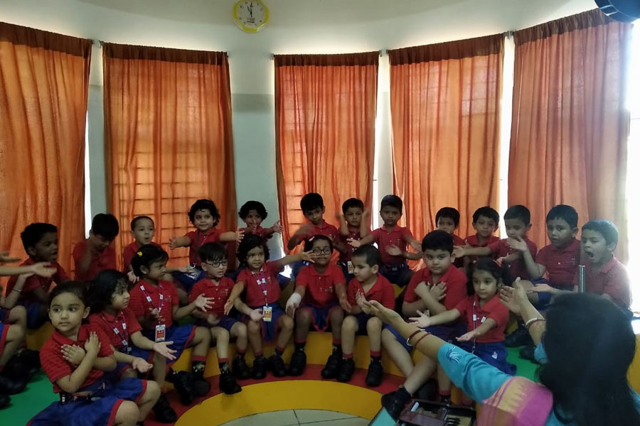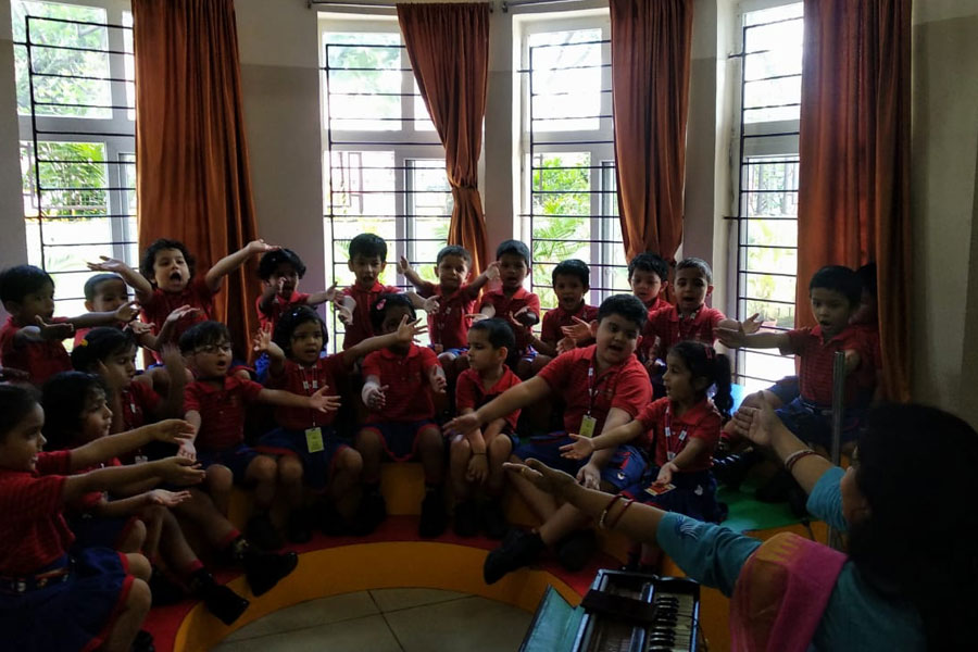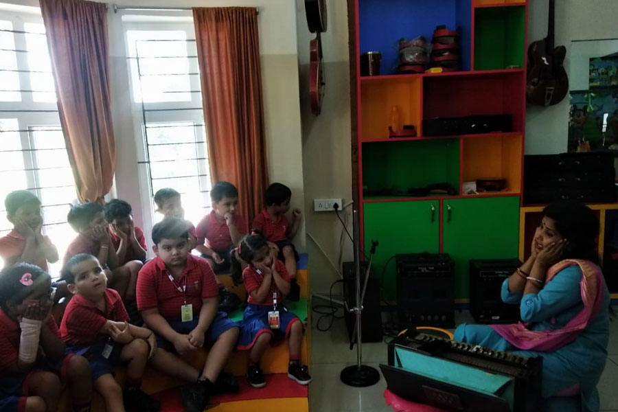 Students of KG-I are always happy to attend the music class. It is the place where they love to sing together with their friends. During one such musical class, the little ones had a wonderful time singing melodiously trying to tune with their Music teacher. They meticulously followed the instruction and put on their best effort to give a good performance. They thoroughly enjoyed the speech rhythm. The activity helped in enhancing their interpersonal, intrapersonal, linguistic, vocal clarity as well as the logical skills.