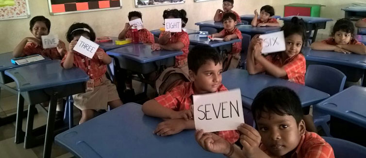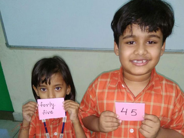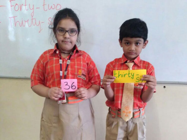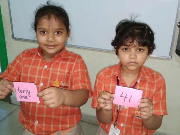 As we all know mathematics is all about fun with numbers. Following this interesting definition of mathematics, the little SAIoneers of Class-I performed an activity on numbers and their names. The students were divided into four groups where two groups were provided with Number cards from 1-50 and the rest two groups with number name cards from 1-50. In this activity, when he teacher randomly called out a number, the students with the corresponding number names and the number cards came forward. They both shook their hands and stood together. This activity continued with all the numbers. Such kind of exercise enhances the logical, linguistic and interpersonal skills of the students.
