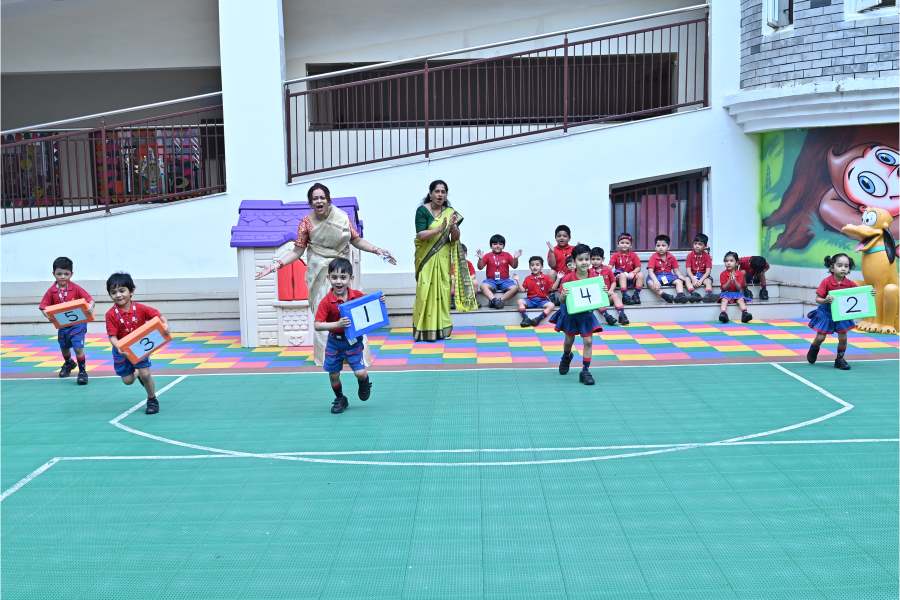 In conclusion, the Nursery students’ participation in the “Maths Maestros Marathon” was a delightful reminder of the value of integrating play with learning. By combining math, teamwork, and physical activity, the little ones not only strengthened their academic abilities but also developed important social and physical skills. At SAI Angan, we continue to strive for holistic education, where children learn by doing, playing, and exploring. The smiles on the students’ faces were a testament to the joy of learning, and we look forward to many more such enriching activities in the future.