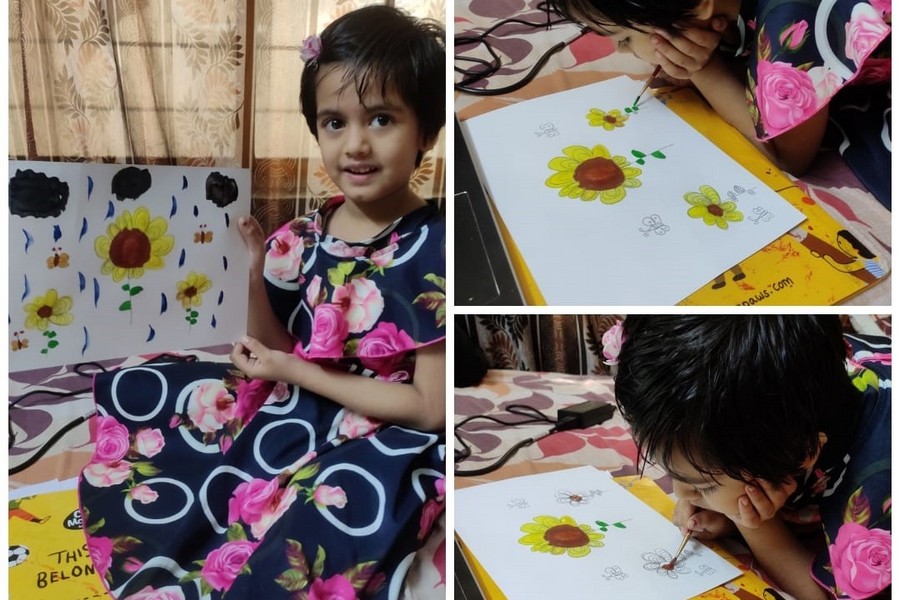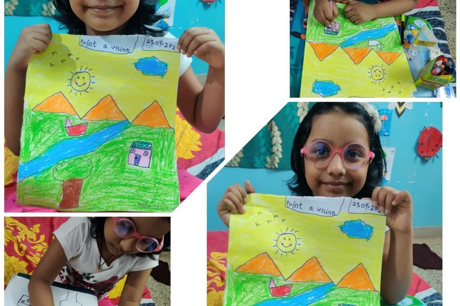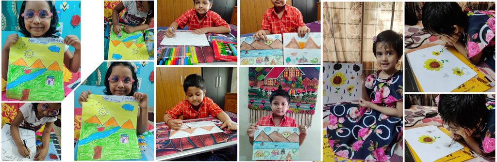 SAIoneers of Class I, II and III had an activity “Paint A Vision” as a part of class activity and we bring you here few glimpses of the activity.It was a fantabulous success with our super talented children painting their dreams out on a plain sheet of paper. The paintings were perfect, spontaneous and absolutely divine to look at. The abundant creativity was expressed from various colour palettes through the vision of expression of these tiny minds. Our tiny artists were given some time to work on their artwork and they presented it virtually on screen. Our SAIoneers created their paintings with wonderful imagination in their minds and hearts.