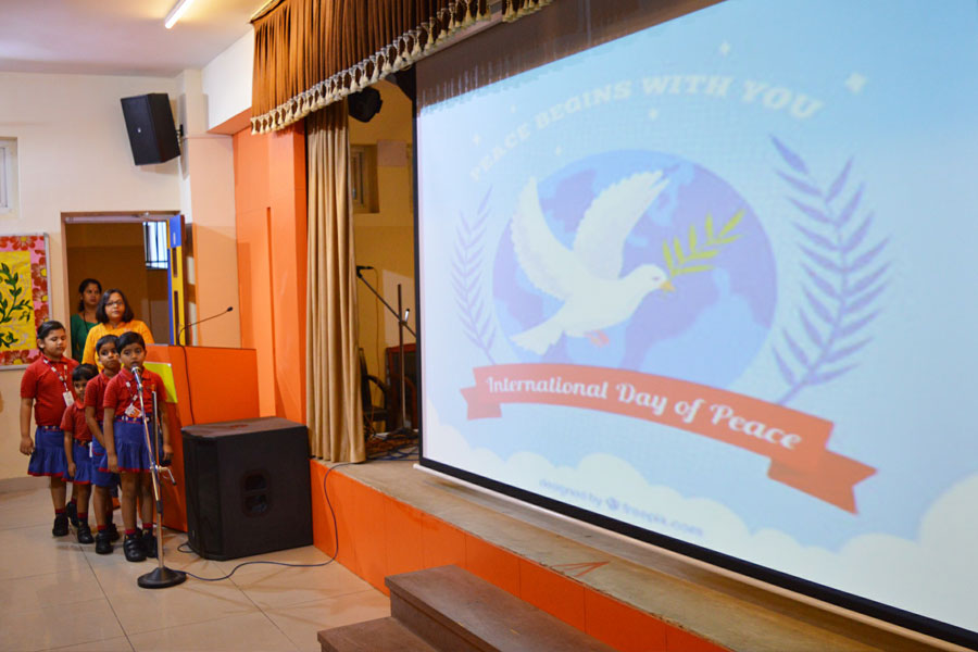 On the eve of International Peace Day, students of SAI Angan showed a Power Point presentation during the Morning assembly. They spoke about the meaning and importance of peace like –