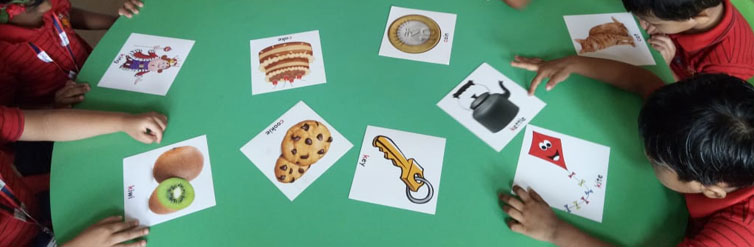 Activities are conducted for the Nursery children to help them become familiar with the letter sounds ‘c’ and ‘k’. Initially the letter sounds were introduced through a phonic story. As the letter sound ‘c’ and ‘k’ are quite tricky, they were introduced to the sound ‘c’ as curly ‘c’ and ‘k’ as kicking ‘k’.