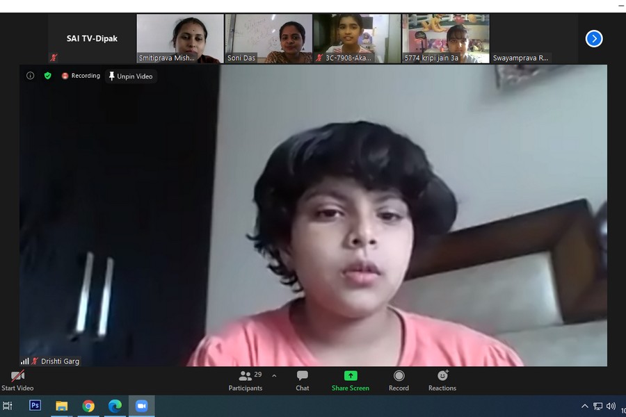 On SAI Angan online platform students of Classes I,II and III were welcomed with open arms to their Quest Club. What Quizzing is all about,is shared by the teacher. A nice Demo and a lovely video about general awareness befitting for the age group was shown.Followed by a very interactive small Quiz class was conducted. Everyone participated with full enthusiasm and answered the questions asked. Last but not the least Quest Club children were all happy and are looking forward to another interesting class for the coming week.