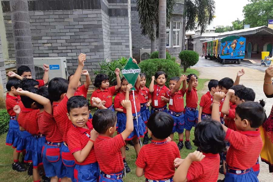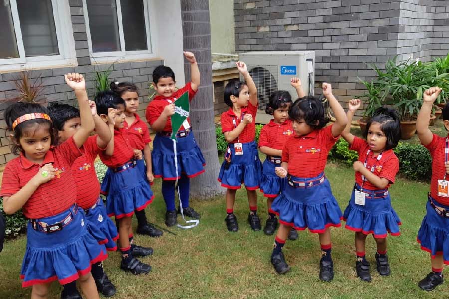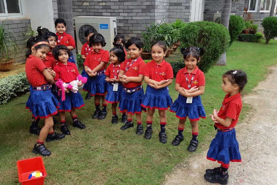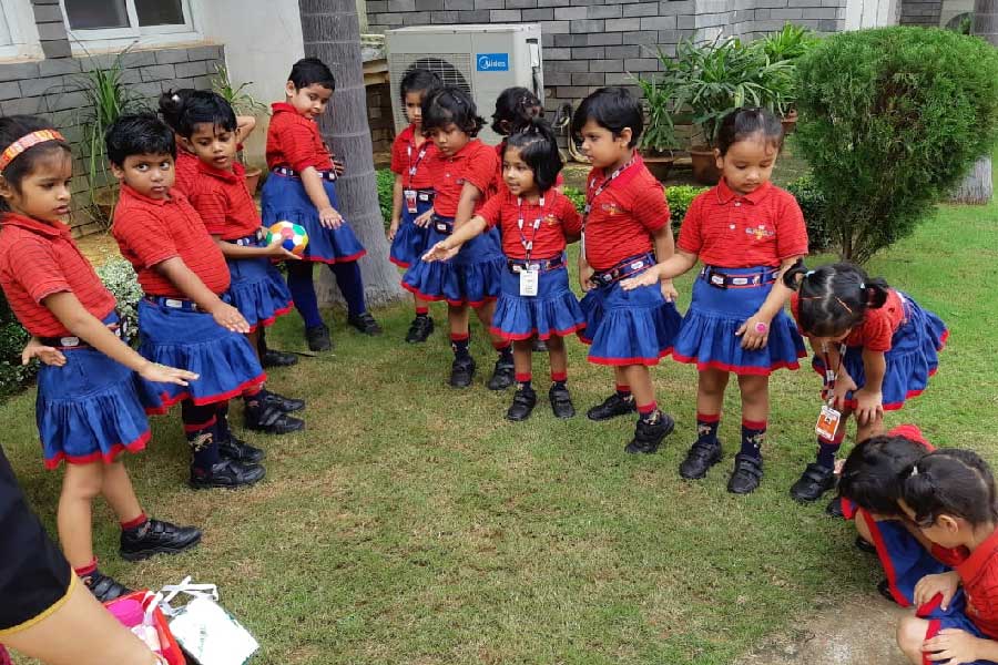 Students of KG I had an interesting activity where they sang a beautiful song, ‘Out in the Garden’, along with their teachers. To make it more interesting and help the students experience the meaning of the song, props like ball, kite and dolls were used. Students went to the garden along with the props and had a wonderful time singing the song amidst nature. They also did different actions to give a tint of perfection to rhyme.