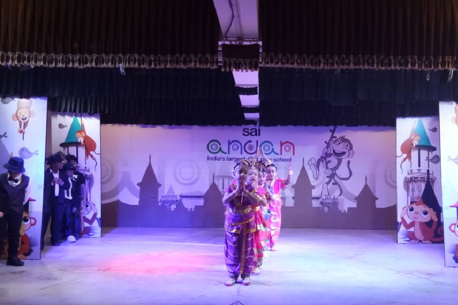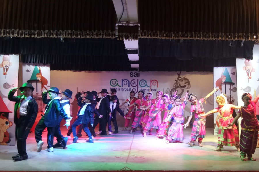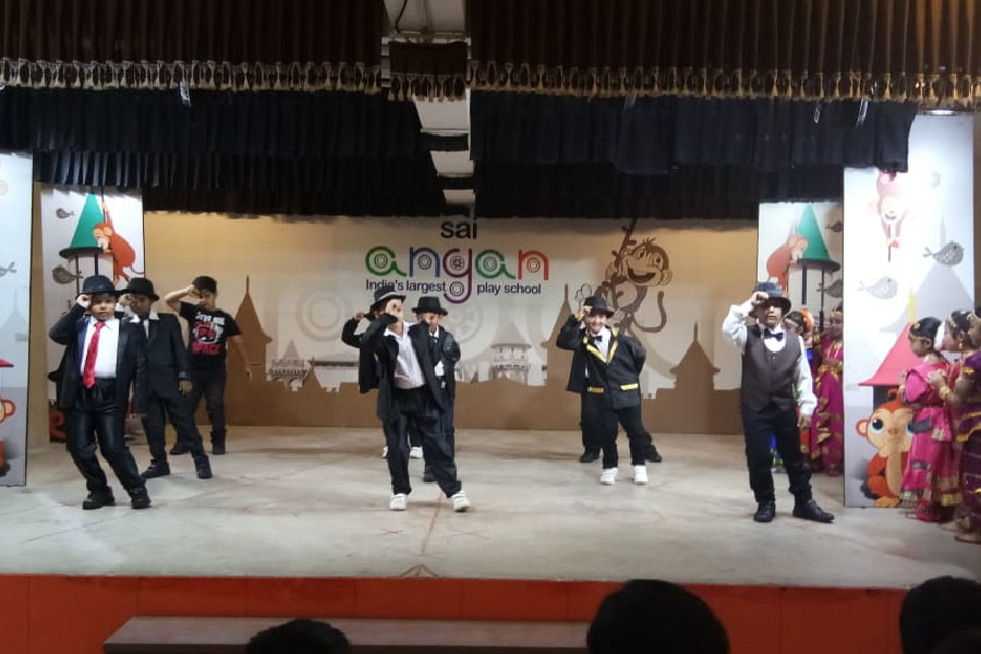 The Class I members of Rhythm Club beautifully performed a dance fusion of Hip Hop and Bharatnatyam. It incorporated modern and traditional classical dance styles. Boys being inspired by the legendary “King of Pop”, Michael Jackson were dressed up with modern clothes. The girls were dressed up in traditional Bharatnatyam attire. The little dancers rocked the stage with their mesmerizing hip hop/ classical remix movements.