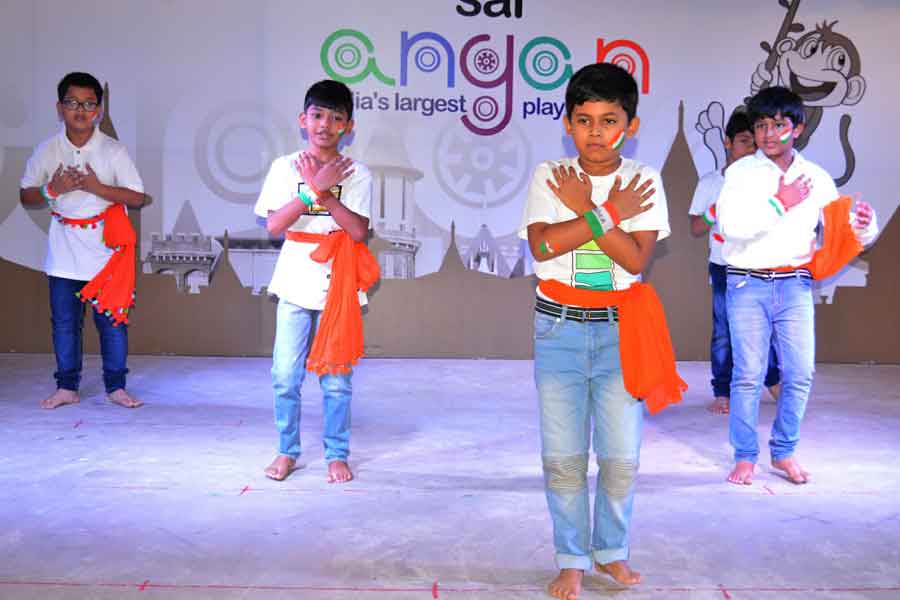 A nation’s culture resides in the hearts and in the soul of its people. Independence Day is adulated each year on 15th of August in India to celebrate the country’s freedom from the British domain on the same day in August 1947. The SAI Angan fraternity and children celebrated Indian Independence Day with pride and grand gestures. The Rhythm Club students of SAI Angan, showcased an exuberant dance performance on patriotic song’s medley, on the eve of the Independence Day. The SAI Angan auditorium reverberated with the voices of excited children; all the dancers were dressed in the colors of the National Flag. The dancers performed with lot of enthusiasm, gaiety and a spirit of patriotism.