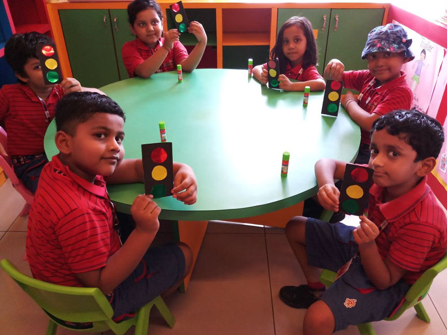 The children of KG-II learnt about various road safety measures through some activities. They learnt about the three important lights, red, yellow and green in the traffic signal. They also understood the importance of zebra crossing, which is especially made for pedestrians to cross the road at an appropriate time. They had a wonderful time making the traffic signals and zebra crossing which helped in enhancing their visual, naturalistic, logical, fine motor and kinesthetic skills