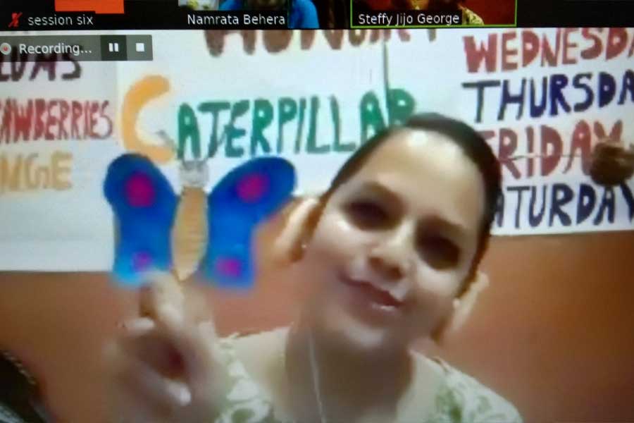 The Kindergartners had an amazing time on the day II of the e-Summer Camp. They sat engrossed listening to the story of a hungry caterpillar and also learnt to make puppets of some of the characters from the story, in three different ways. On the 3rd day, the participants sang a lyrical hindi song, thoroughly enjoying it by clapping their hands all the time. Next, they sat down to draw and paint some amusing cartoon characters.