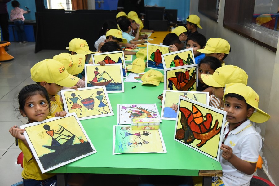 On March 15, 2024, the young learners from Playgroup to KG-II had another fantastic day as a part of SAI Repertoire. They began with an enchanting storytelling session titled ‘Tales Untold,’ led by Ms. Prachitara Mishra, which sparked their imaginations. Following this, they enjoyed swimming and skating, demonstrating their skills and confidence in these activities. The day continued with an interactive tribal art and craft session, where they explored vibrant colors and creative shapes with boundless enthusiasm.