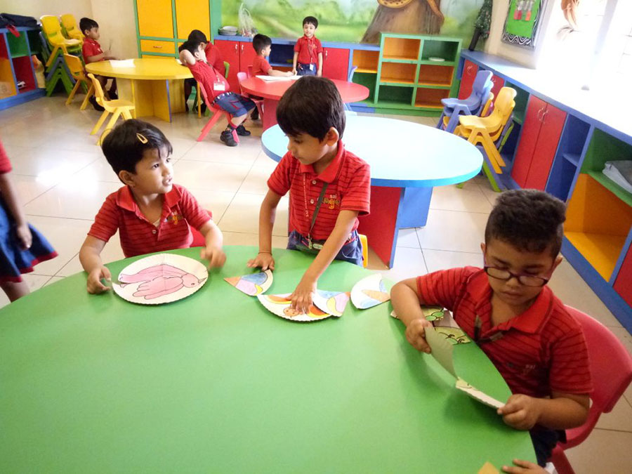 Puzzles are attractive games that help to exercise the mind and challenge the thought-process of a child. These important educational tools help in improving a child’s logical and analytical skills and develop in them a greater interest for learning. It also enables children to recognize different colors, shapes and sizes and develops creativity as children try to apply their intelligence in a bid to join the scattered pieces. The children of KG-I were given four different sets of puzzles made with the help of paper plates. They had a brilliant time sorting the puzzles happily. They were able to count the pieces perfectly. It was a great sight to see their elated faces as they finished solving them.Completing even a small and simple puzzle involves thinking and developing ways on how to achieve it. This builds skills like problem solving and reasoning in children. These educational toys also promote cooperative play where children discuss with each other and work together to join the puzzles as well as share the joy of achievement. It also does wonders to hand-eye co-ordination and helps refine their fine motor skill. These are also simple and enjoyable ways to practice their mathematical skills.