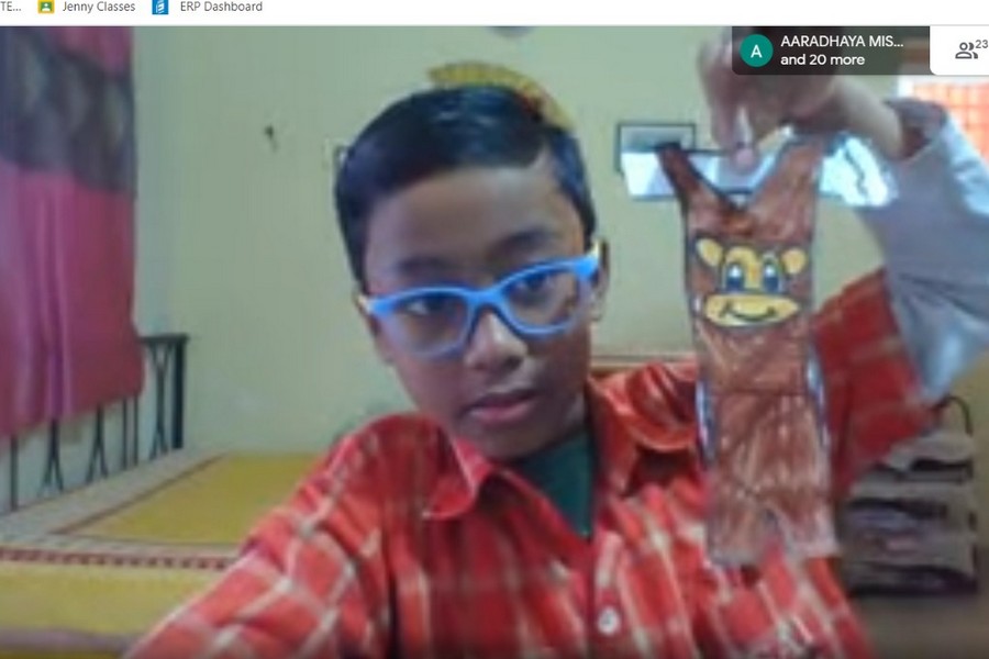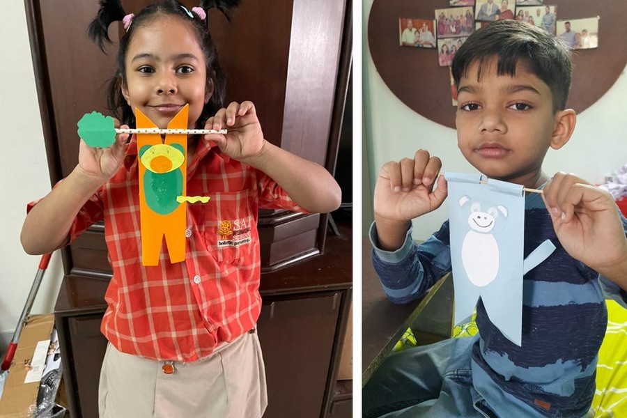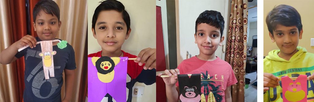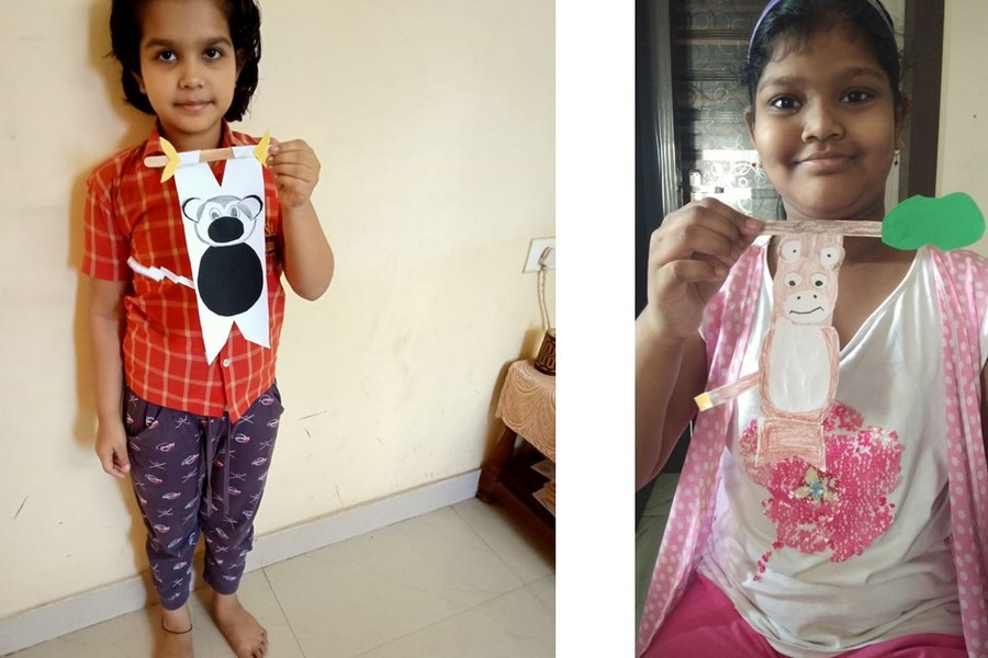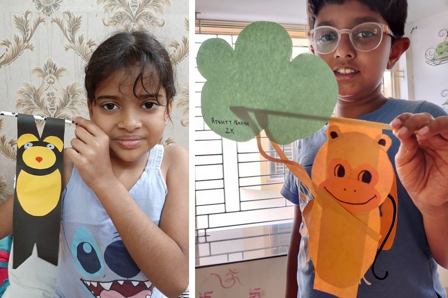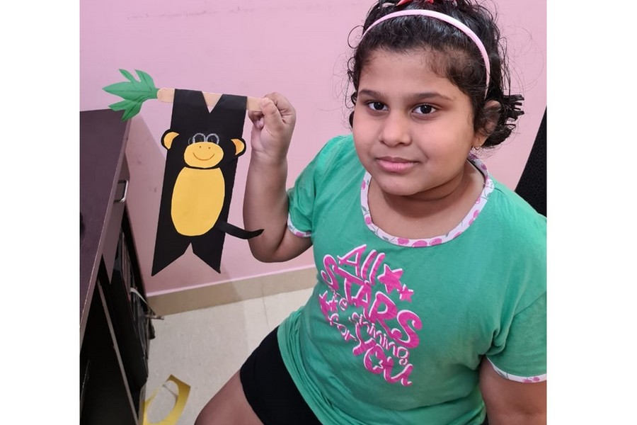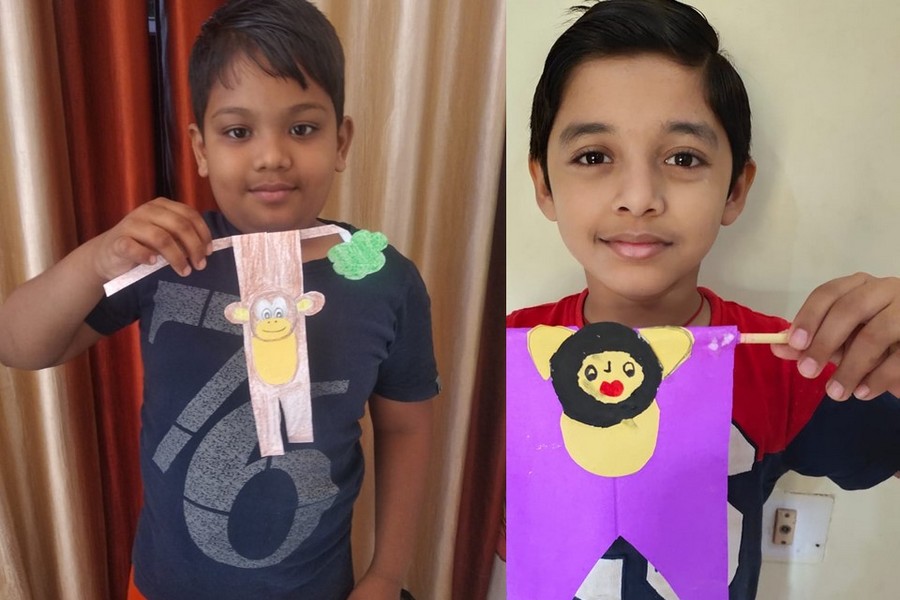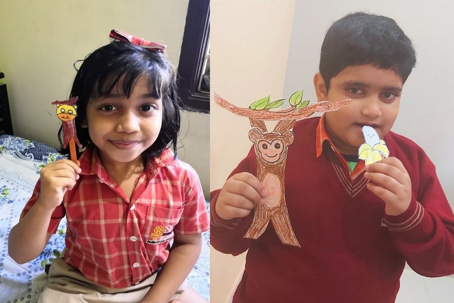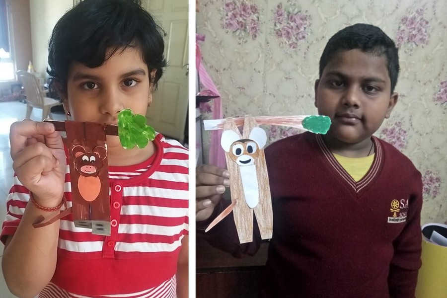 Today class 2 children have done an activity related to “South American folk stories”. They read the story of how monkeys think that all bananas belong to them and had fun by using different items like different colored chart papers, ice cream sticks / toothpicks / straws, glue, colors (sketch pen / crayons). With the help of these items, and learnt to make a swinging monkey.