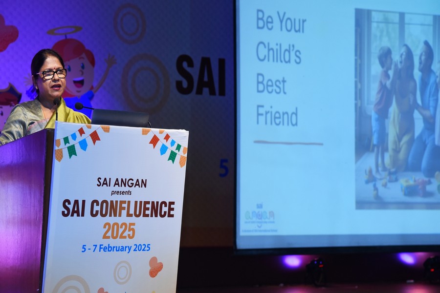 SAI Confluence 2025 opened with boundless enthusiasm as the youngest SAIoneers—Playgroup, Nursery, and KG I—took center stage at Indraprastha Auditorium on February 5, 2025. The atmosphere buzzed with excitement as tiny feet danced, little voices narrated enchanting stories, and bright eyes sparkled with joy. These little learners transformed the stage into a magical world of imagination, where storytelling and creative expression merged seamlessly with the essence of holistic development. Dr. Silpi Sahoo, Chairperson, SAI International Education Group, welcomed parents and guests, emphasizing this year’s theme, Panchakosa, rooted in Vedic philosophy, which explores the five layers of human existence—Annamaya, Pranamaya, Manomaya, Vijnanamaya, and Anandamaya—aligning seamlessly with holistic childhood development.