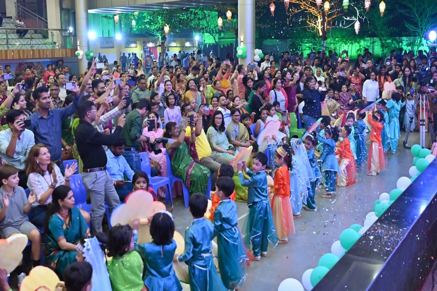 This year’s theme, Panchakosa, inspired by Vedic philosophy, beautifully connected their performances to the five layers of human existence—body, breath, mind, intellect, and bliss. The audience watched in awe as the children embodied these ideas through movements, music, and expression, showcasing their early steps toward self-awareness and creativity. Parents beamed with pride, witnessing their little ones take a confident leap into the world of learning and performance.