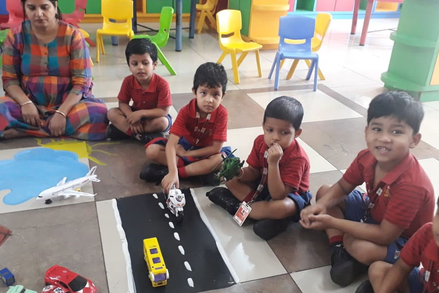 Children get fascinated to see different modes of transportation. To teach the students of Nursery on means of transport, a discussion was initiated where they were asked about different means of transport on land, water and air. To exercise the mind further, studets were asked on how they commute to school every day and how they travel to distant places. The views of students were aptly noted.