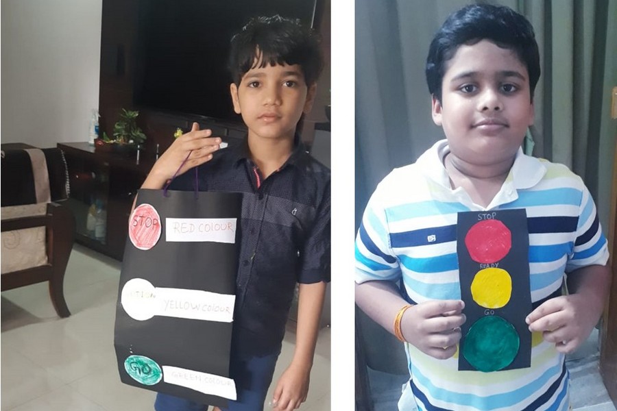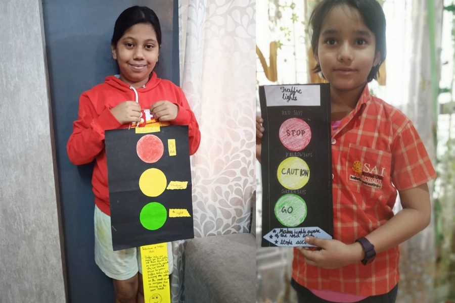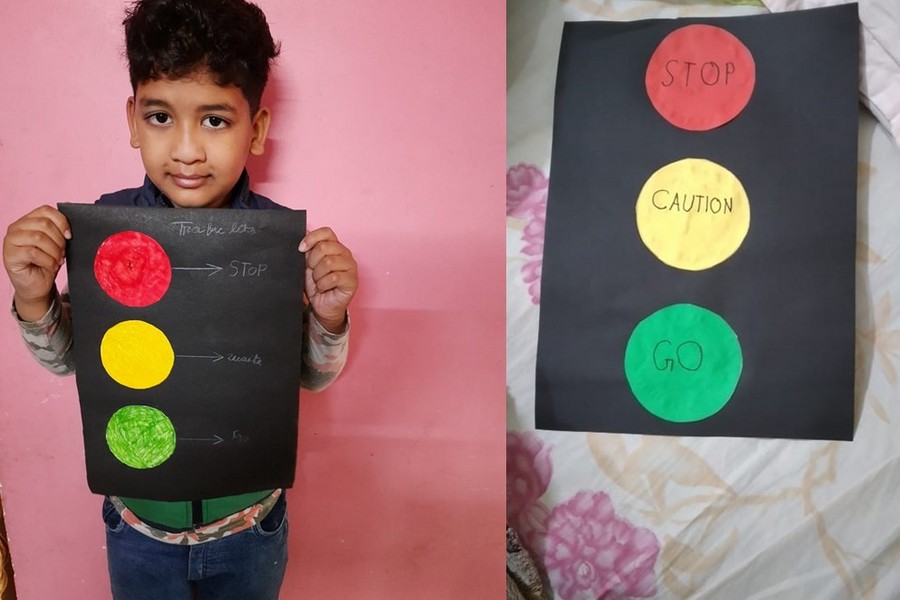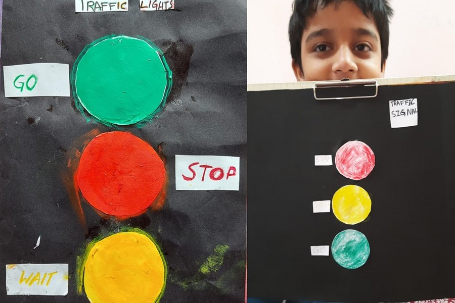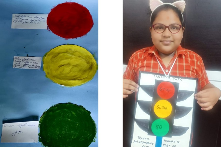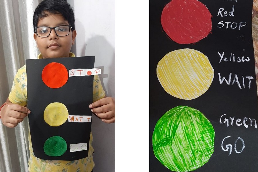 The children of Class III did an activity on traffic signals which made them understand about lights used at traffic signals of various colours such as red, yellow and green. They used black and white chart papers to make traffic lights and coloured it to give it a nice look. Sharing of knowledge about safety on roads is a much prior thing for us. So, the activity also represented the role of lights in traffic signals and how they help us prevent accidents on roads. The session was very insightful for all the students as they got to learn while fun doing the activity.