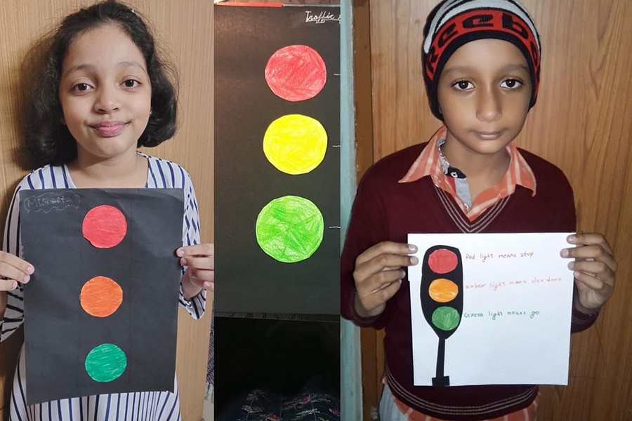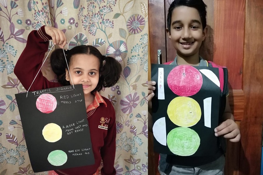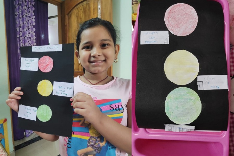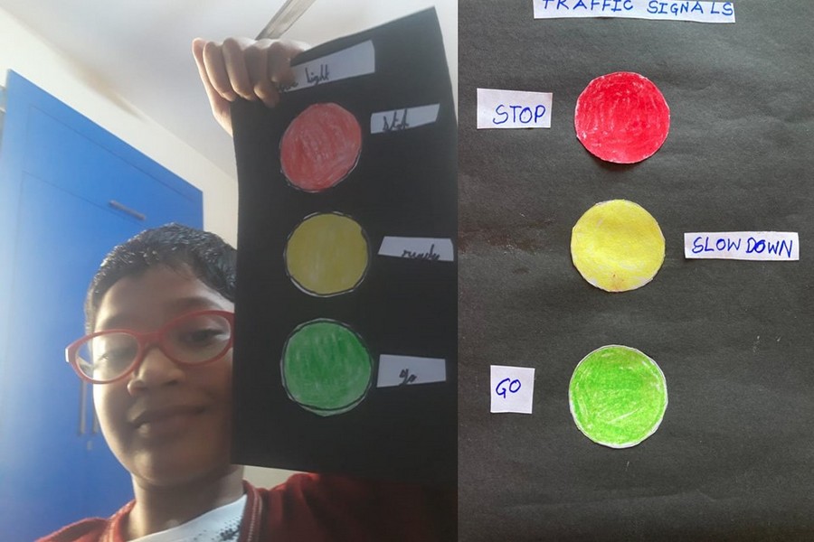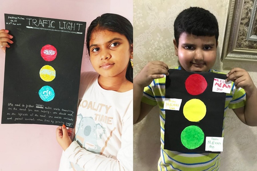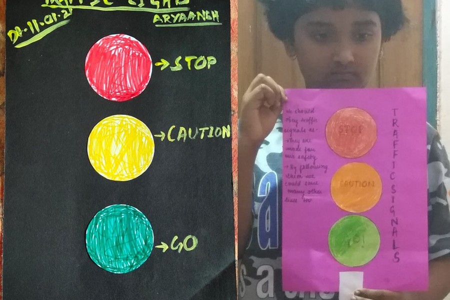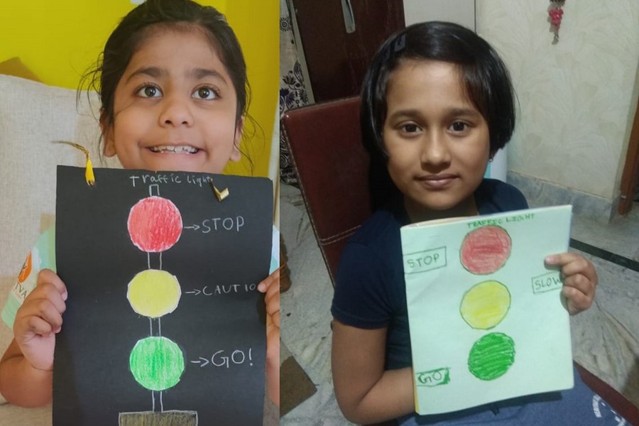 The children of Class III did an activity on traffic signals which made them understand about lights used at traffic signals of various colours such as red, yellow and green. They used black and white chart papers to make traffic lights and coloured it to give it a nice look. Sharing of knowledge about safety on roads is a much prior thing for us. So, the activity also represented the role of lights in traffic signals and how they help us prevent accidents on roads. The session was very insightful for all the students as they got to learn while fun doing the activity.